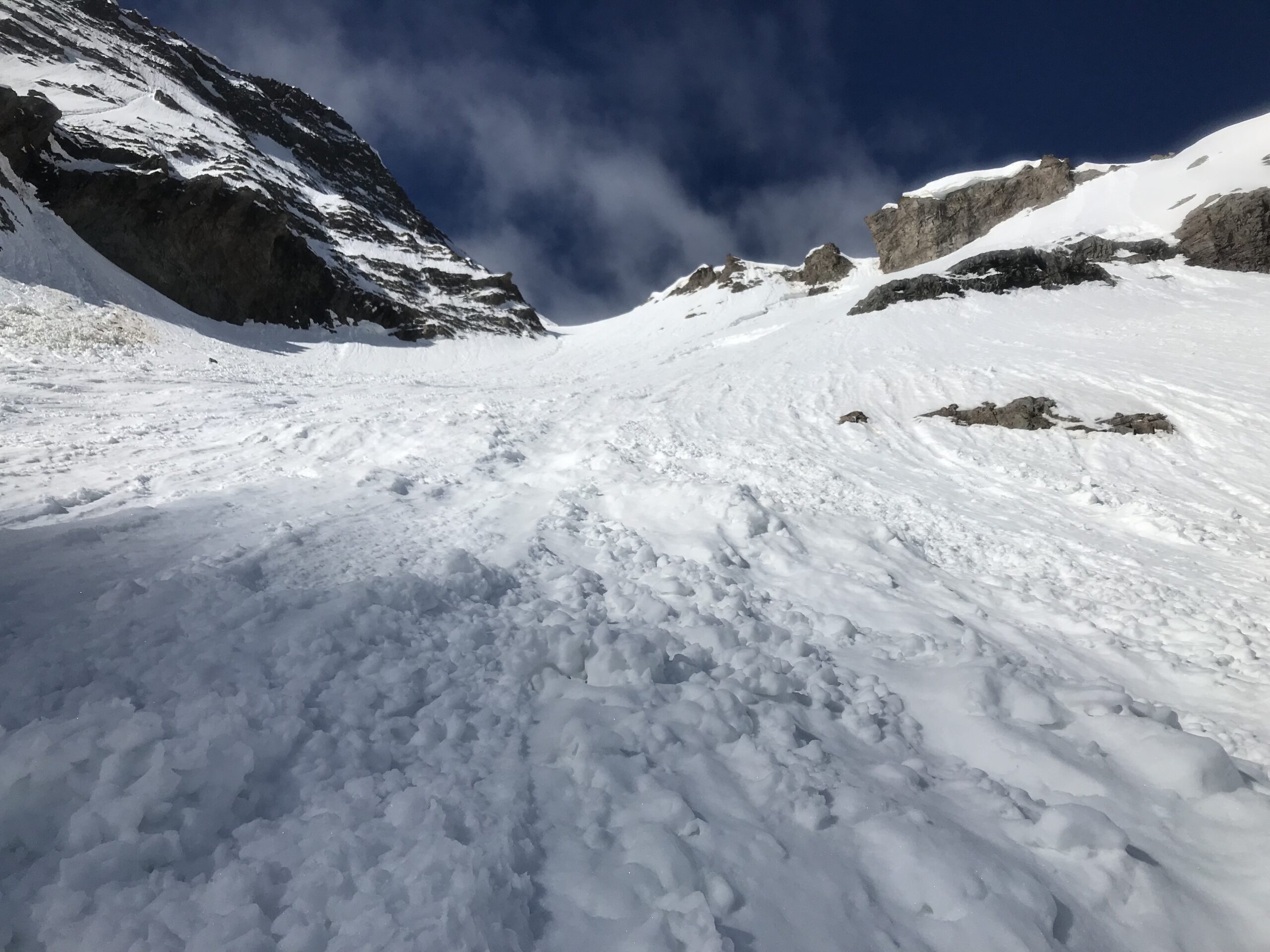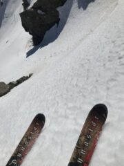 Mi sono fermato prima del traverso finale causa neve pessima e pendii superiori non ancora scaricati. Da 2900 a 2400 neve “recente” non trasformata e quindi…