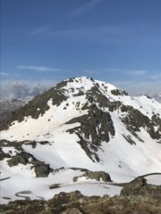 Si portano gli sci fino al rifugio Mongioie. Salita senza problemi prima in sci, poi veloce con picca e ramponi fino in cima, su neve…
