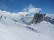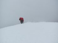 partiti a monte di Ruilles trovato poca neve nel canale sud in alto della neve fino in cima con nebbia e nevischio. bella discesa nella nebbia.