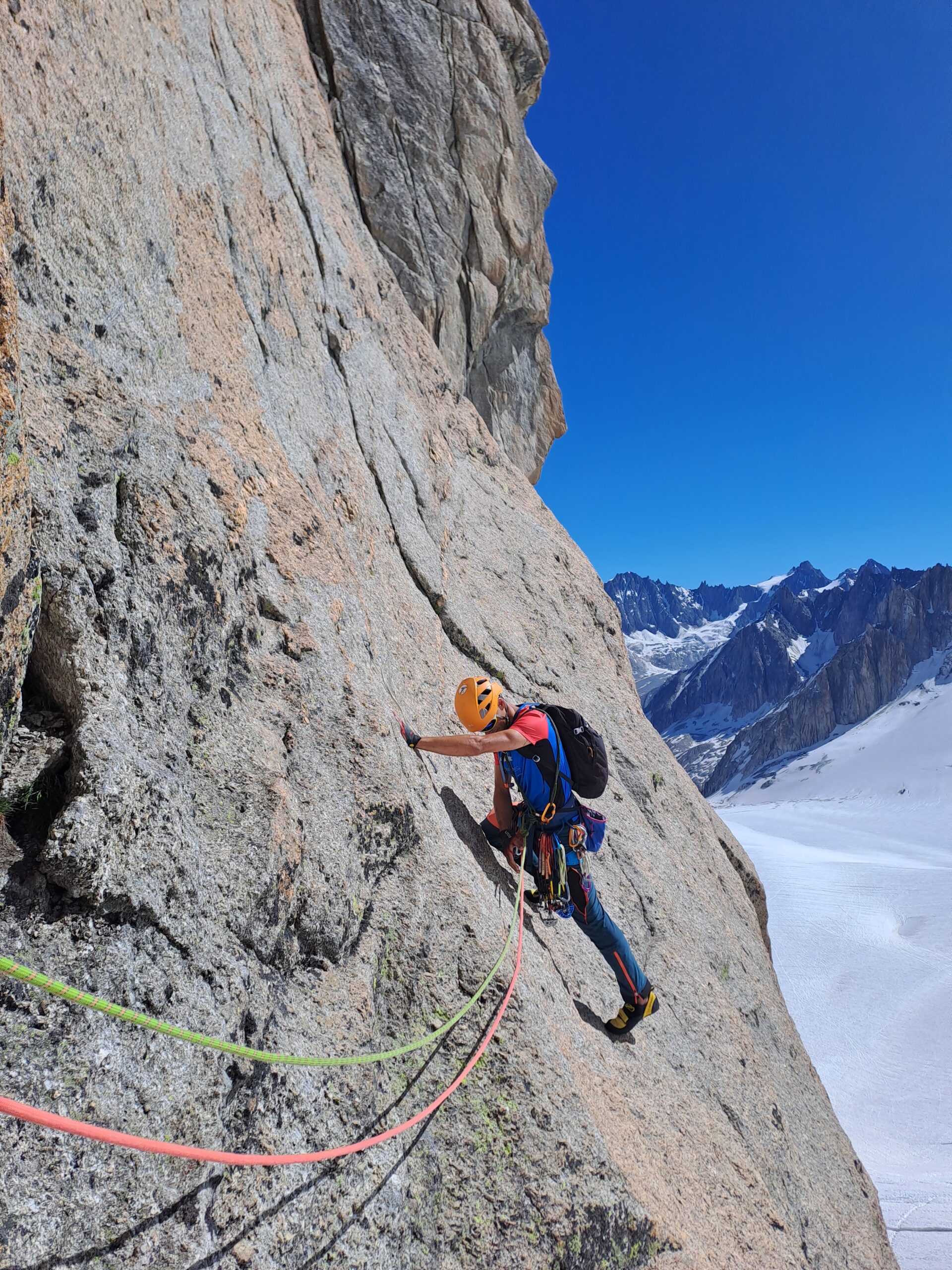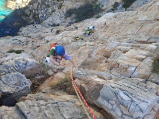 Roccia patinata di salsedine nei primi due tiri, poi migliora. Friend inutili, la via è ottimamente spittata. Il traverso non è più di 6b. L3…