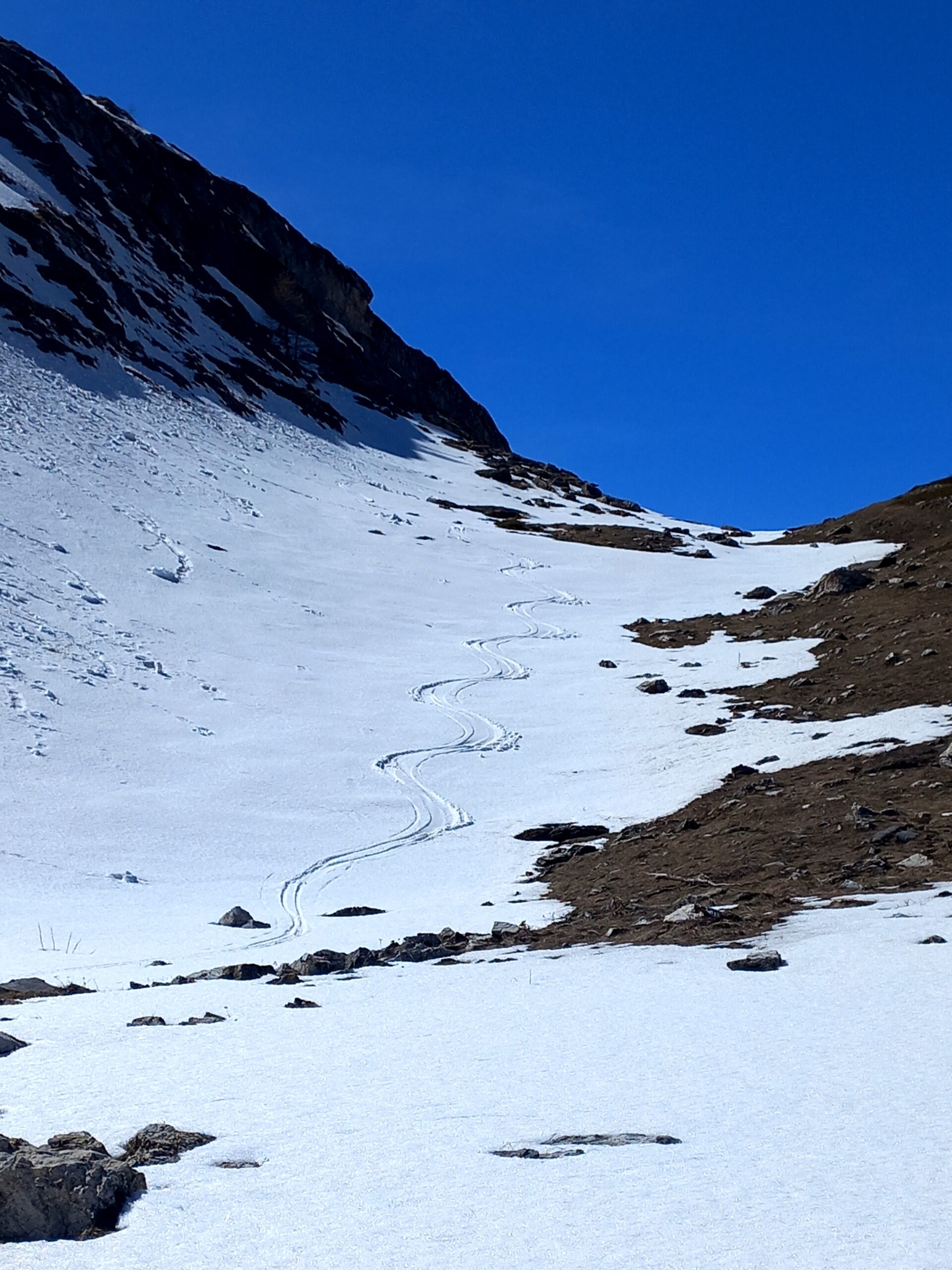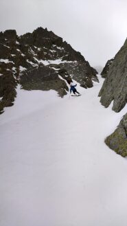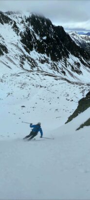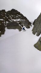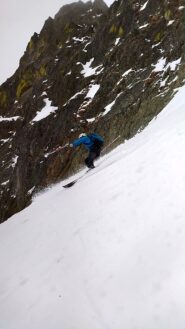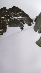 Condizioni pressoché identiche alla relazione del giorno prima: neve bagnata nel canale (ormai già bella tritata) e bellissima trasformata al conoide. Scendendo con un po'…