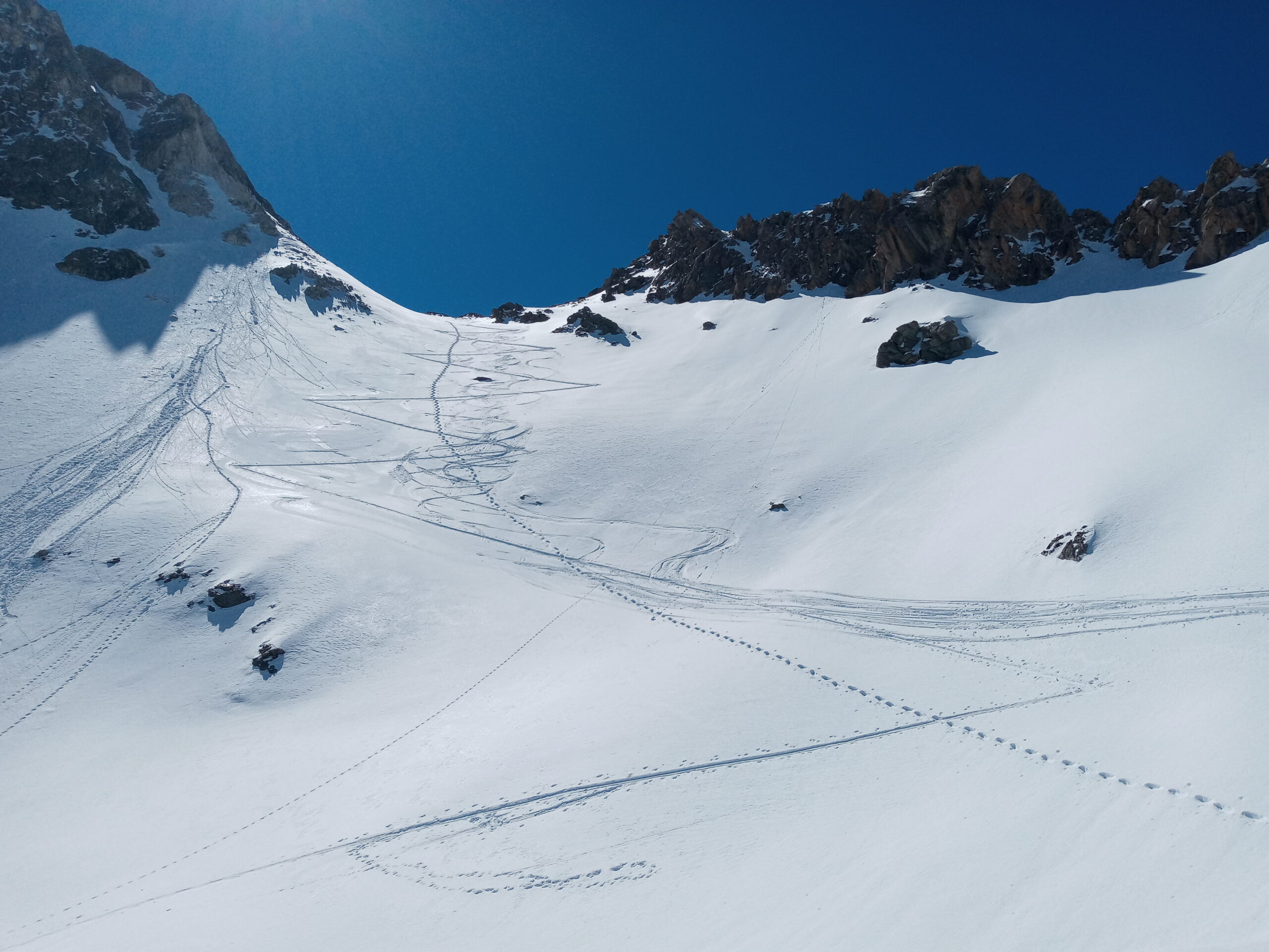 Quasi tutti i tipi di neve tranne la farina polverosa. In alto placche dure, crosta portante e non, ventata, morbida... Più in basso più facile e…