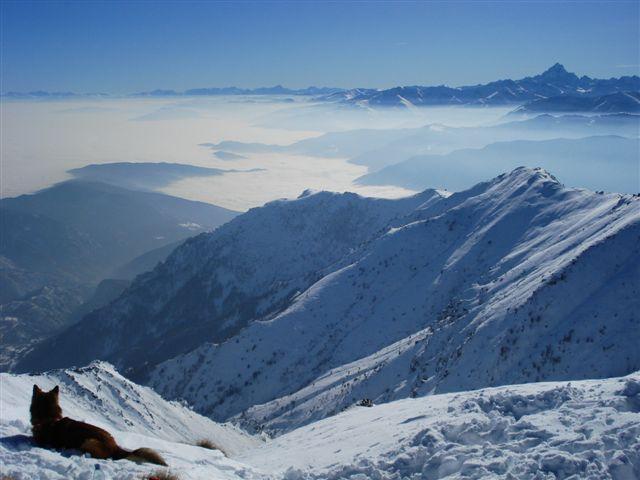 giornata splendida, temperatura primaverile, la pianura torinese sotto una fitta nebbia e noi a goderci beatamente per più di un'ora il sole in cima, salita…