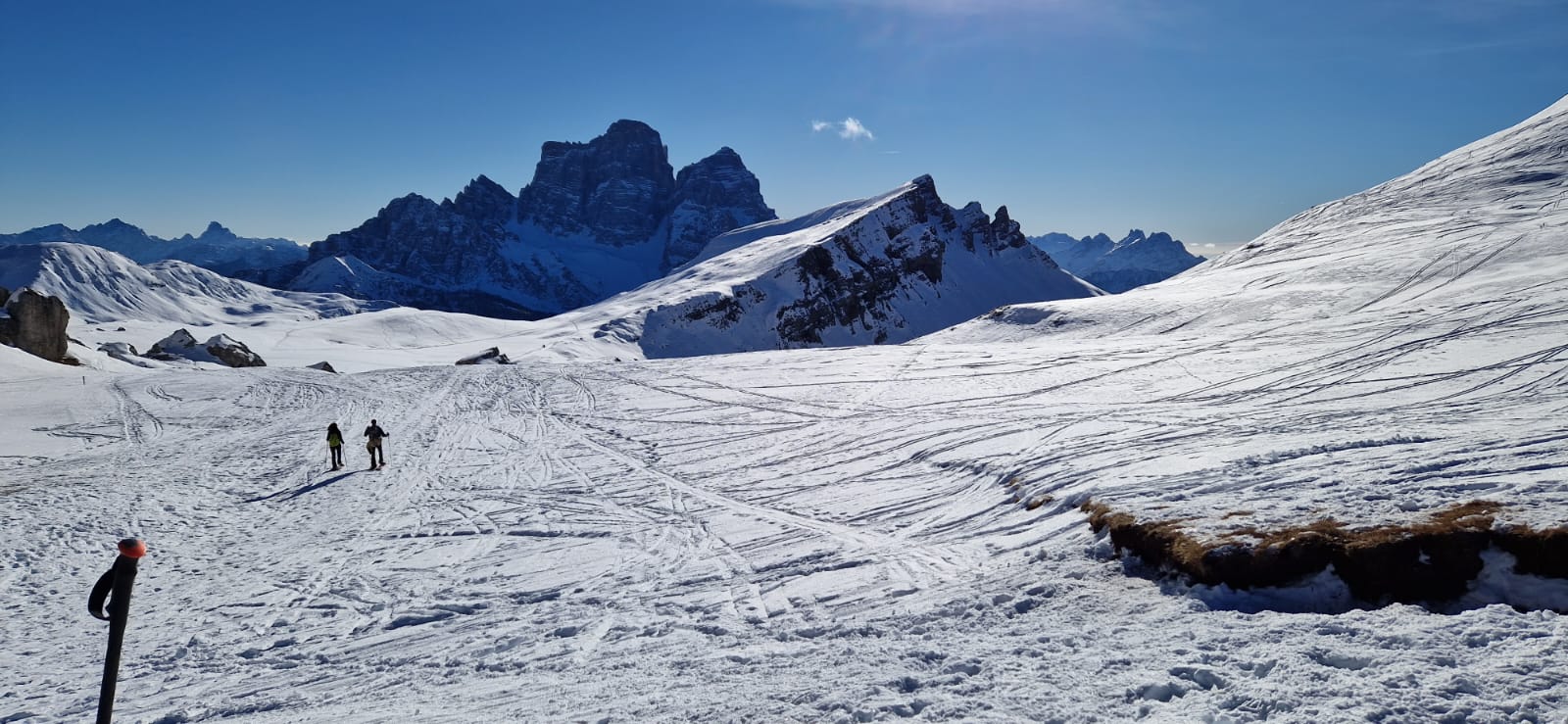 Buone condizioni, ottimo firn scendendo dal Mondeval, pistata e veloce dalla forcella Giau