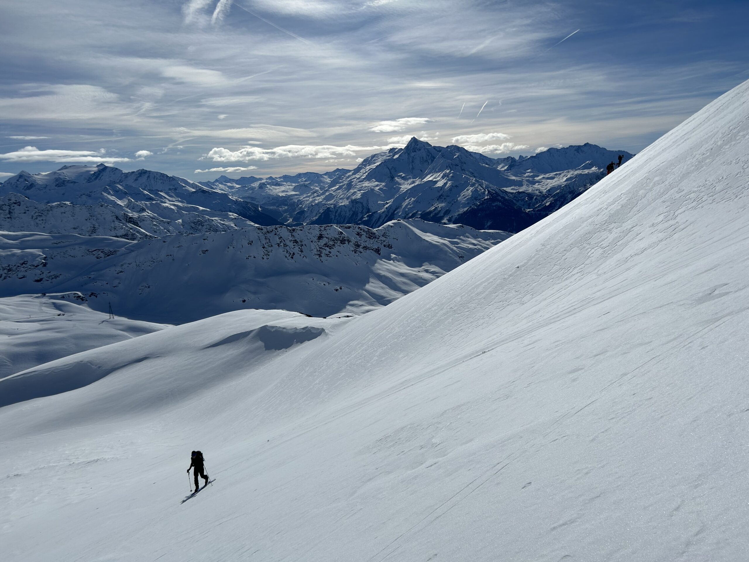 Buone condizioni generali. Farina molto bella dalla vetta fino a quota 1900 circa, crosta comunque sciabile sotto. Con Andrea e Mario