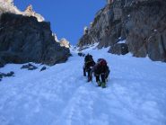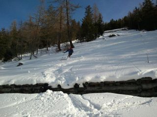 Si parte sci ai piedi dal parcheggio si Thumel. Prima salita nel canalone dove si ravana un pò poi, con la neve e la temperatura…