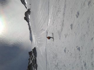 La strettoia che divide la parte alta dalla bassa non permette il passaggiocon gli sci, per cui siamo stati costretti a una srampicata di una…