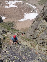 Prima ripetizione della via con gli apritori, bella via di montagna, roccia perfetta, abbiamo ancora disgaggiato il poco che muoveva. Linea logica , facile ma…