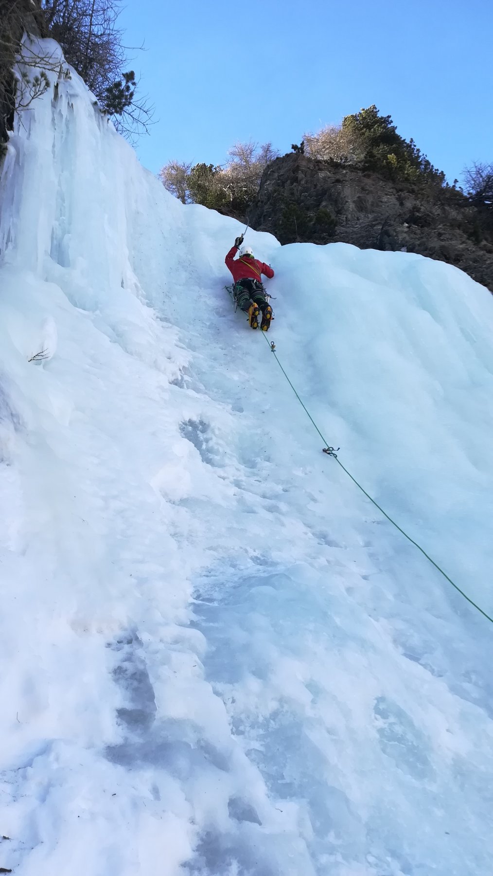 giornata molto affollata sulla cascata con diverse cordate di italiani e stranieri, ghiaccio buono e a tratti con croste da disgelo , solo L4 un…
