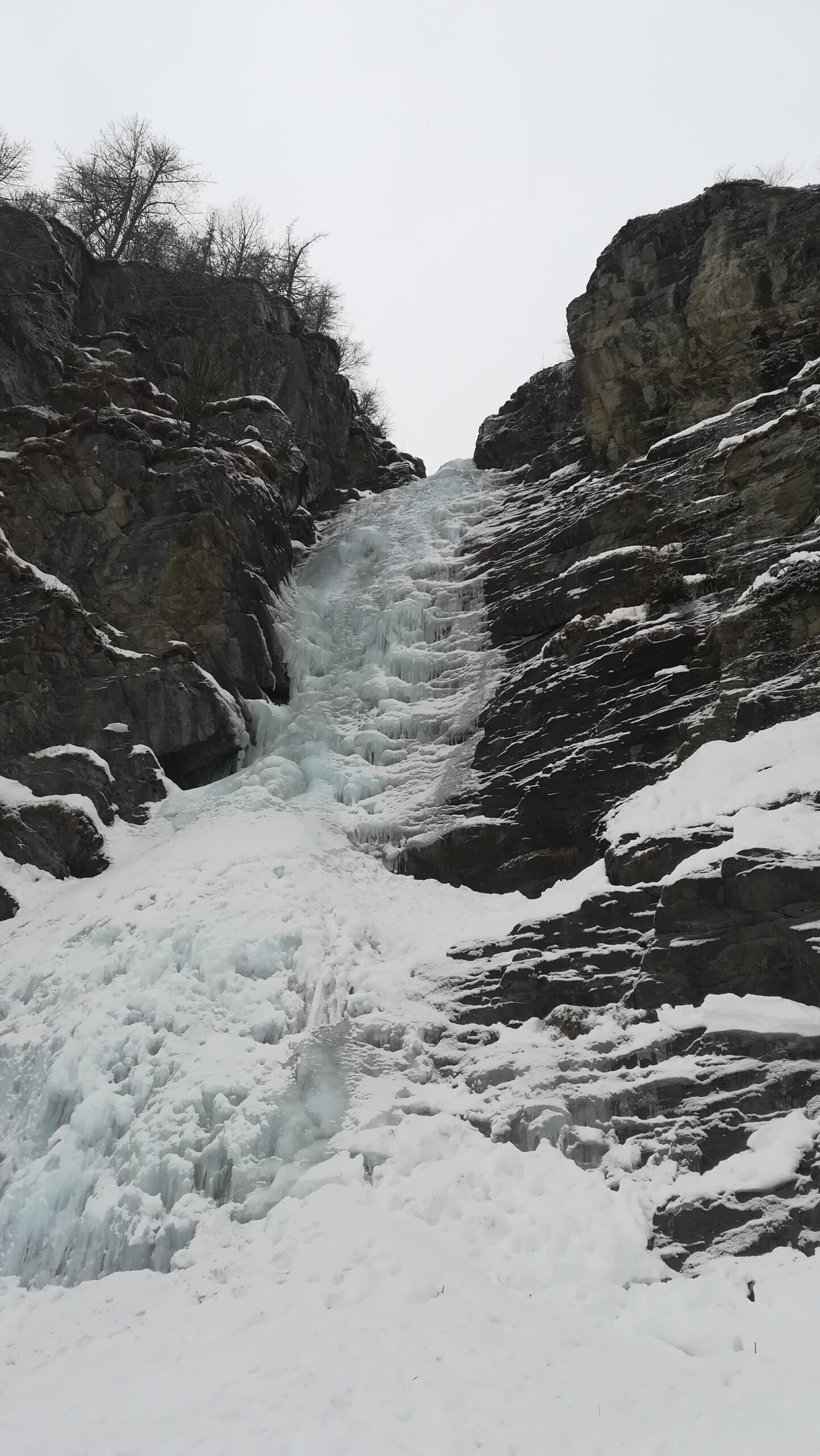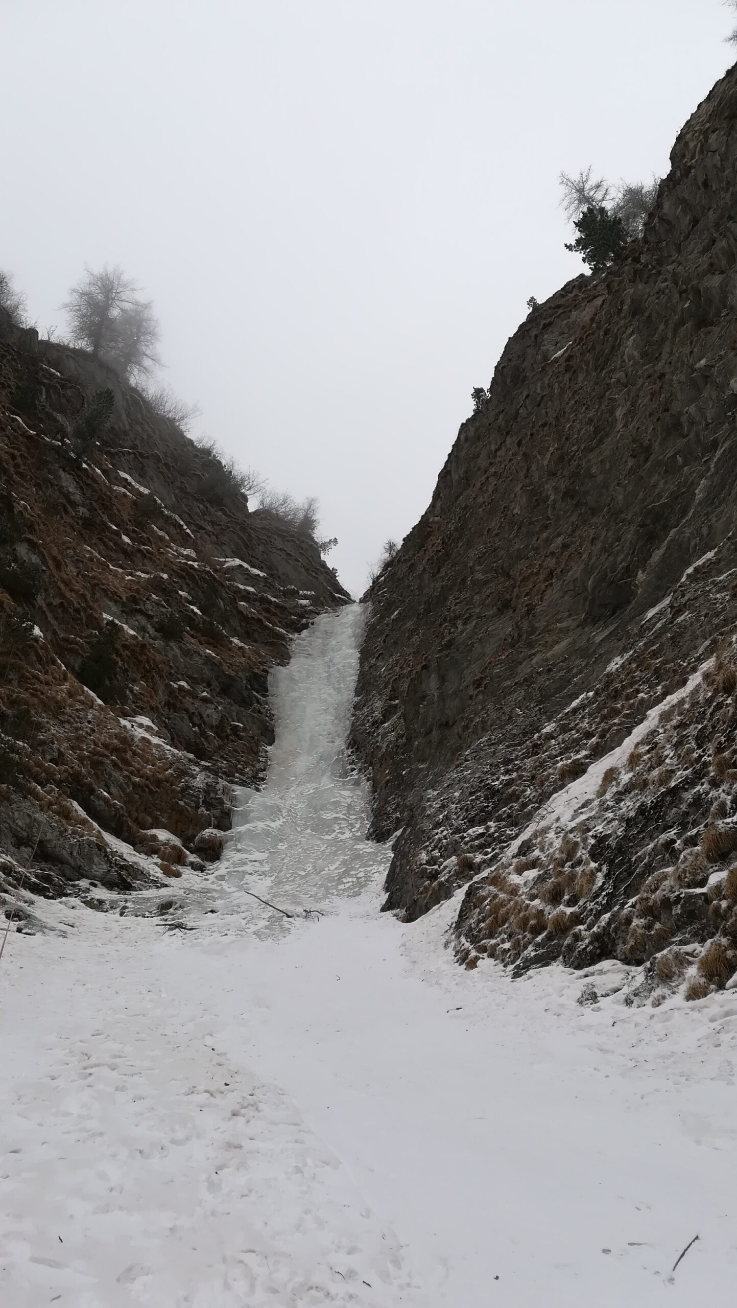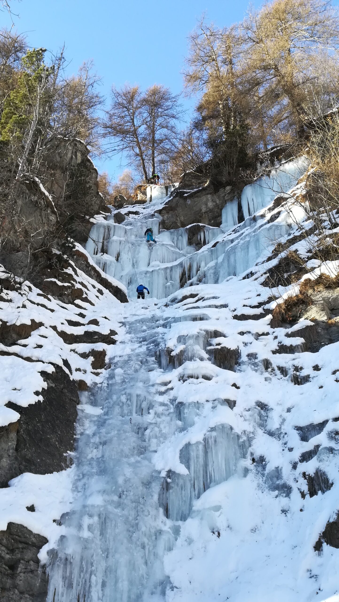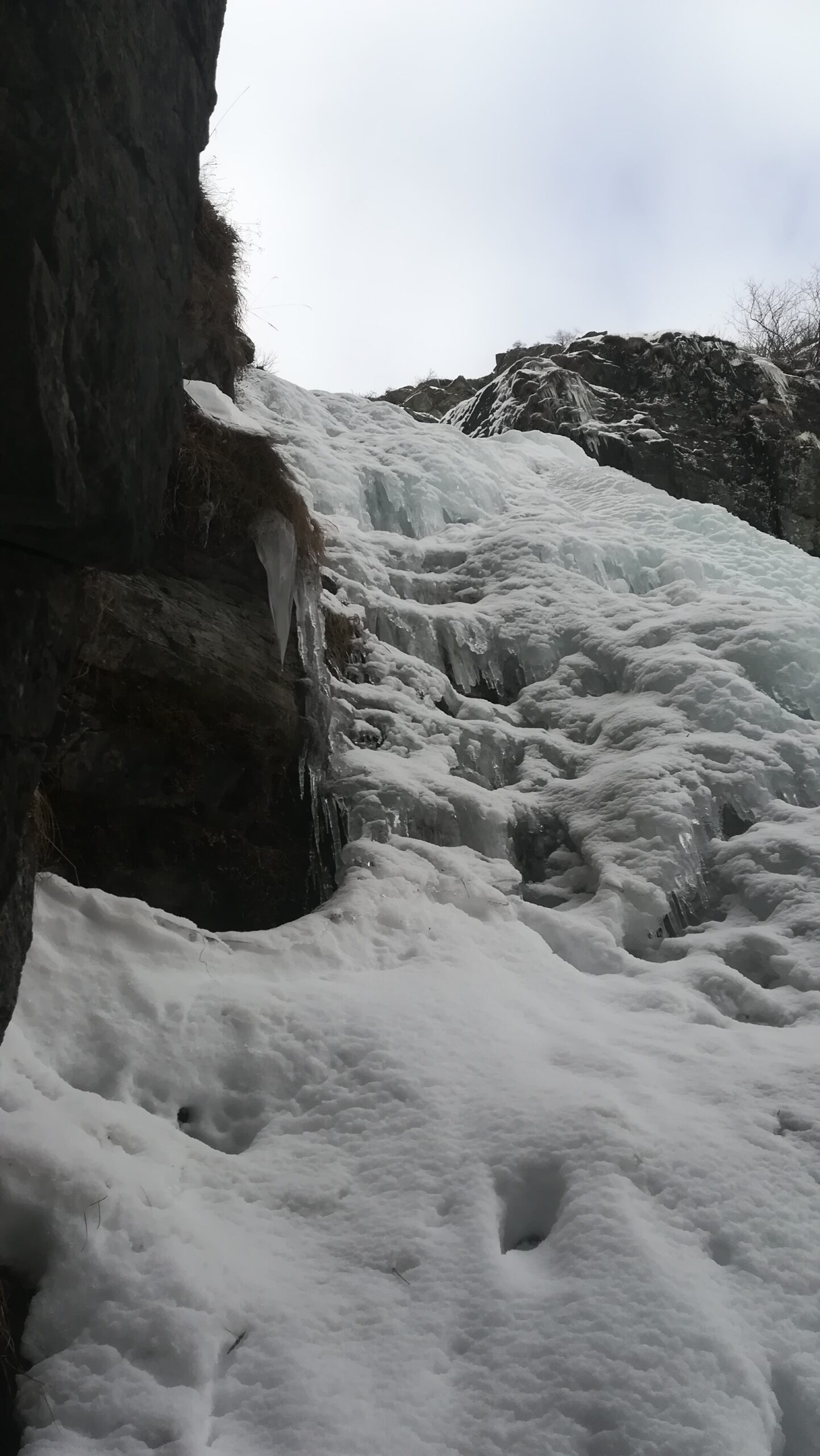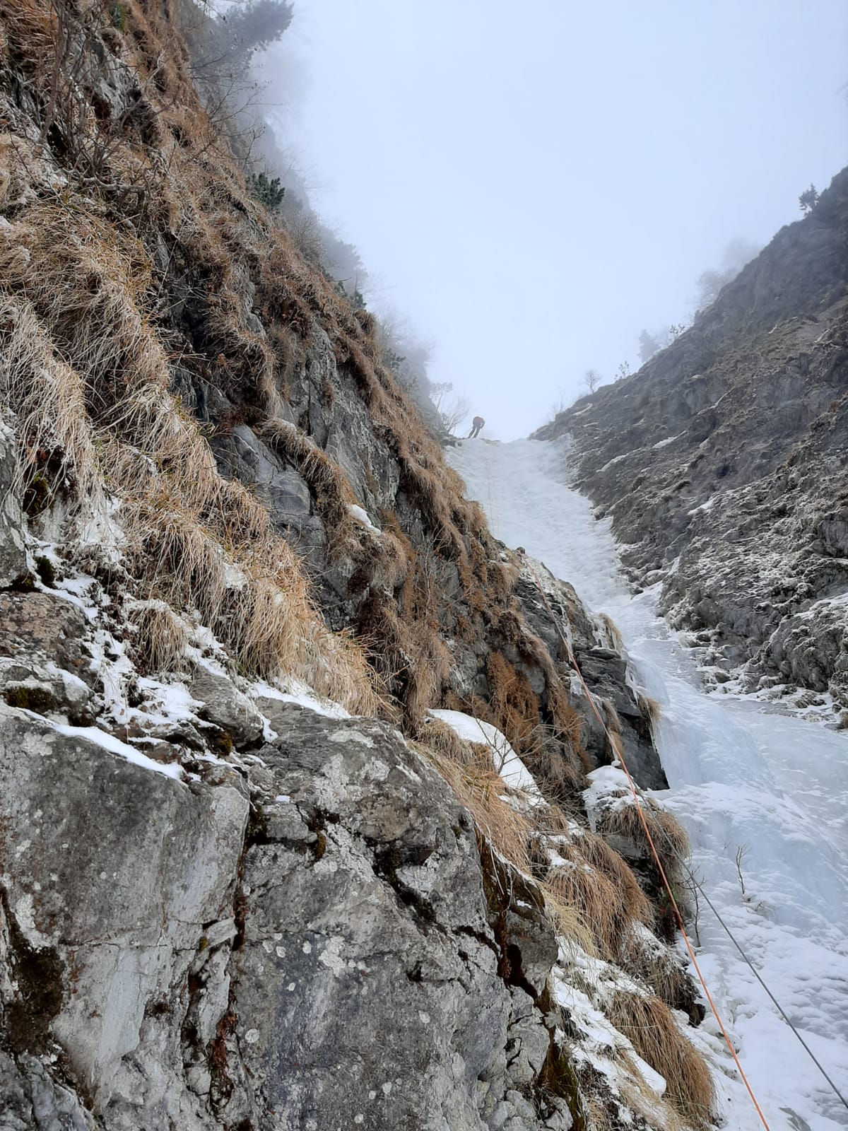 la cascata di dx è formata è scalabile, traccia a piedi battuta