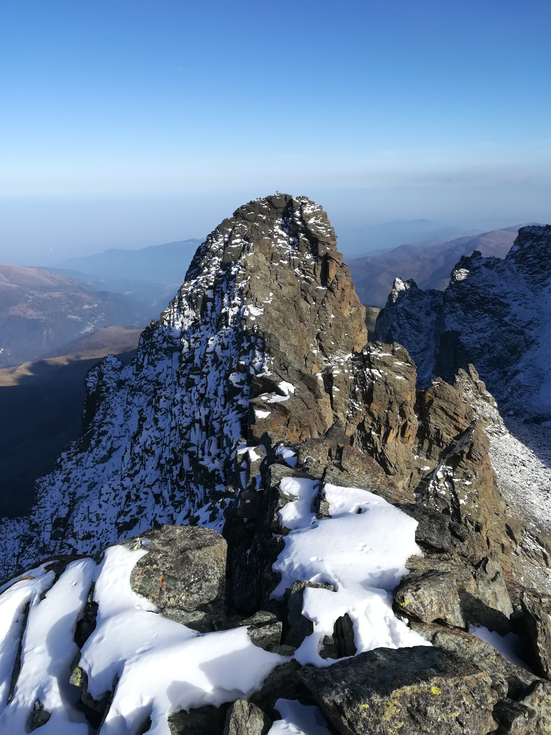 Bella salita in una giornata di meteo perfetto, poco prima di arrivare in vetta al Picco Montaldo si inizia a trovare la neve