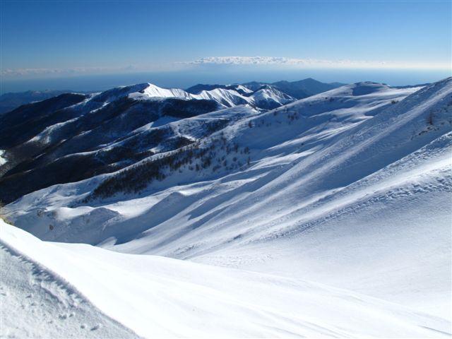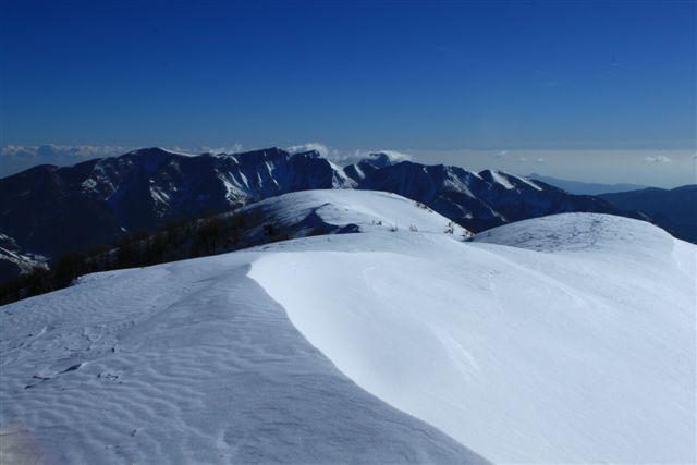 | giada | Il golfo di Alassio | giada | Salendo nel bosco | giada | Panoramica verso Monesi | giada | Il Pizzo d'Ormea in lontananza | giada | Uscendo dal bosco | giada | Uno sguardo verso Ventosa, Missun e Bertrand | giada | Verso la Cima Garlenda | giada | La dorsale che dall'Omo dell'Alpetta arriva sulla Garlenda | giada | Uno sguardo verso le Marittime | giada | Gli splendidi pendii di Monesi | giada | La dorsale verso il Frontè | giada | La conca che sale al passo Frontè da est e il Monega | giada | Caserme al passo Frontè | giada | Verso il Frontè | giada | Crinale tra Garlenda e Frontè