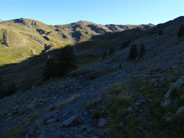 | giada | Il pendio a sud e dietro le Lobbie | giada | Scendiamo di qua | giada | Prima piano | giada | Iniziamo la discesa dalla P. Trento | giada | La P. Trento vista dal sentiero di salita verso la P. Malta: a sinistra il canale di salita, a destra il pendio canale di discesa | giada | Dal passo di S. Chiaffredo | giada | Verso il colletto e Punta Malta | giada | Le ultime pietraie prima della cima | giada | In vetta alla Malta | giada | Monviso, Dante, laghi.... | giada | In discesa verso il Vallone dei Duc | giada | Belle cattedrali | giada | Scendendo nel vallone dei Duc | giada | Il laghetto nei pressi del rifugio | giada | All'uscita del bosco