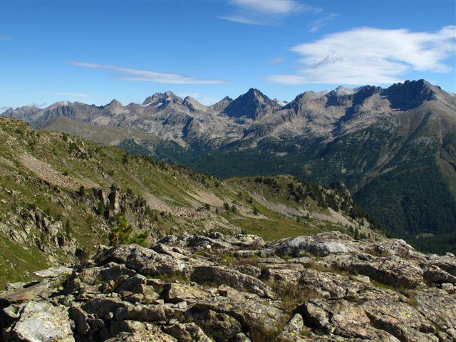 | giada | Nel bosco | giada | Alla Baisse de Ferisson e il M. Lapasse | giada | Inizio del nostro crinale dalla Baisse de Ferisson | giada | Uno sguardo verso il mare e Nizza | giada | Svetta il gelas | giada | In cammino sul nostro crinale | giada | La B. de Ferisson e il M. Lapasse | giada | Panorama verso sud | giada | Alex e Graziella | giada | Il Vallon de Prals | giada | La conca dei Laghi di Prals | giada | Arrivano le prime nubi | giada | Il crinale già percorso | giada | A sinistra la C. de la Valletta di Prals | giada | Ciam della Valletta di Prals