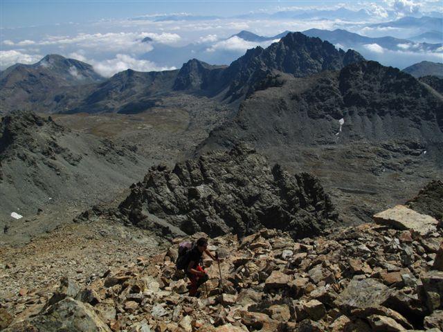 | giada | Dall'insellatura vista verso la punta Michelis: salita arrampicando dove ci sono le due persone o nel canale di pietre a sinistra dove si può camminare tra pietre instabili | giada | Salendo alla Michelis | giada | La vetta | giada | Foto di vetta | giada | Dalla Michelis vista su P. Trento, Lobbie e Malta | giada | Vista sul Quintino Sella e i laghi intorno | giada | Il Re | giada | Andando verso la P. Dante | giada | I laghi delle Forciolline e parte del vallone salito | giada | La Michelis vista da P. Dante, col tratto di salita ben visibile | giada | Verso il passo Fiorio Ratti | giada | Al passo Fiorio Ratti | giada | Il Fiorio Ratti visto dal basso | giada | Quasi fuori della pietraia | giada | In basso le nubi