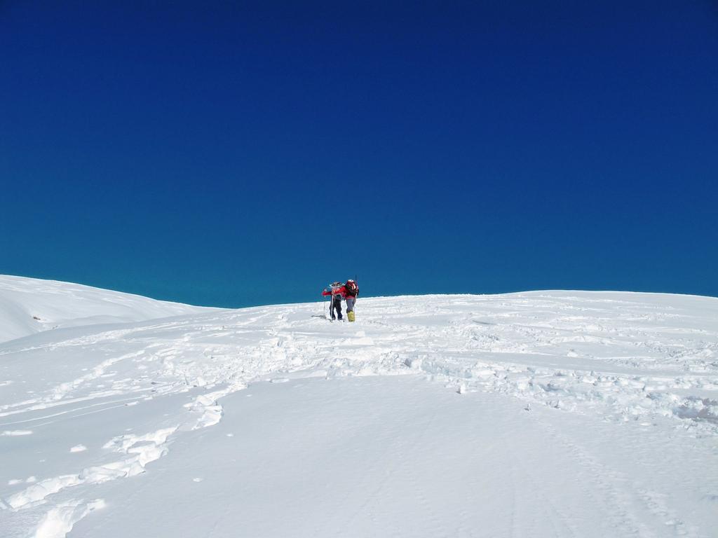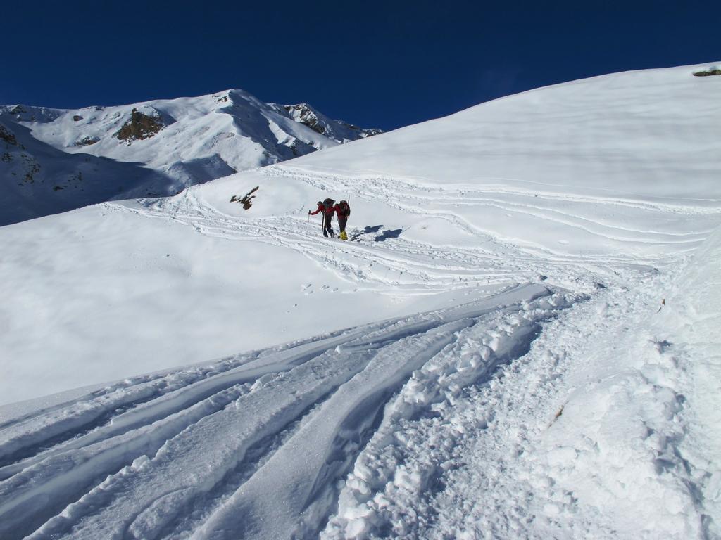 Partiti dalla sbarra senza racchette sulla strada con tratti ghiacciati, effettuato tagli con neve a tratti crosta portante sino a quota 2500 da dove abbiamo…