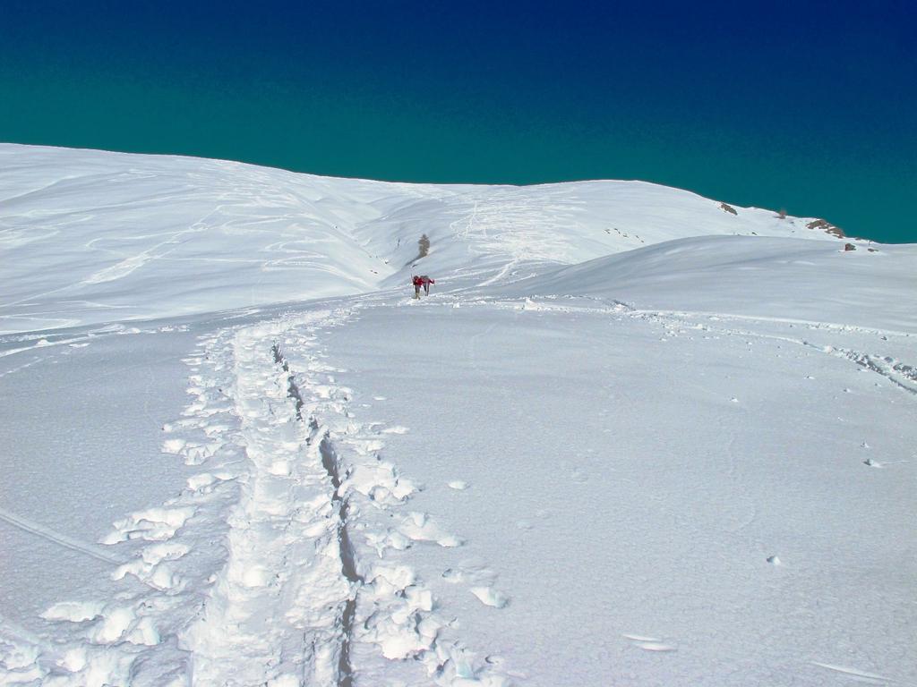 Lasciata l'auto all'incrocio per la borgata Brich, primo tratto senza racchette, calzate a quota utile di circa 2000 metri in salita portante, dalla croce percorso…
