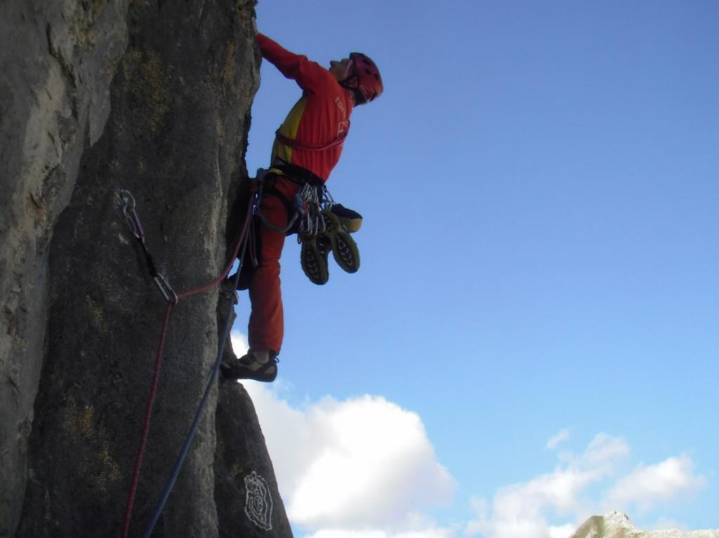 Via davvero molto divertente. Protezioni lunghe ma sufficienti. Salita con Alessandro in una giornata semplicemente magnifica ( Fa da contrappeso al tempaccio di sabato!)
