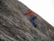 Sempre ottima scalata per un inizio di stagione. Oggi ancora nevaio alquanto fastidioso alla base, e freddino sul primo tiro. Sole soltanto dopo la quarta…