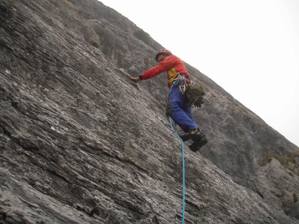 Sarà per la nebbia presente su tutto il percorso, ma la via non mi ha entusiasmato: ciuffi d'erba, lichene, qualche masso instabile. Belli comunque il…