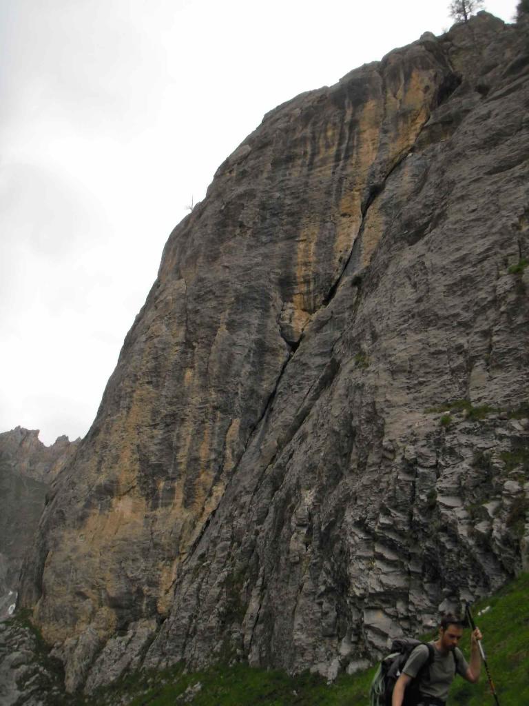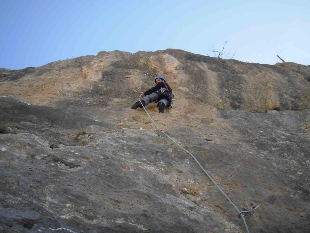 | gianfri49 | Uscita dal 2° tiro | gianfri49 | Il diedrino della terza lunghezza | gianfri49 | La grande fessura diagonale lungo la quale si svolge l'itinerario