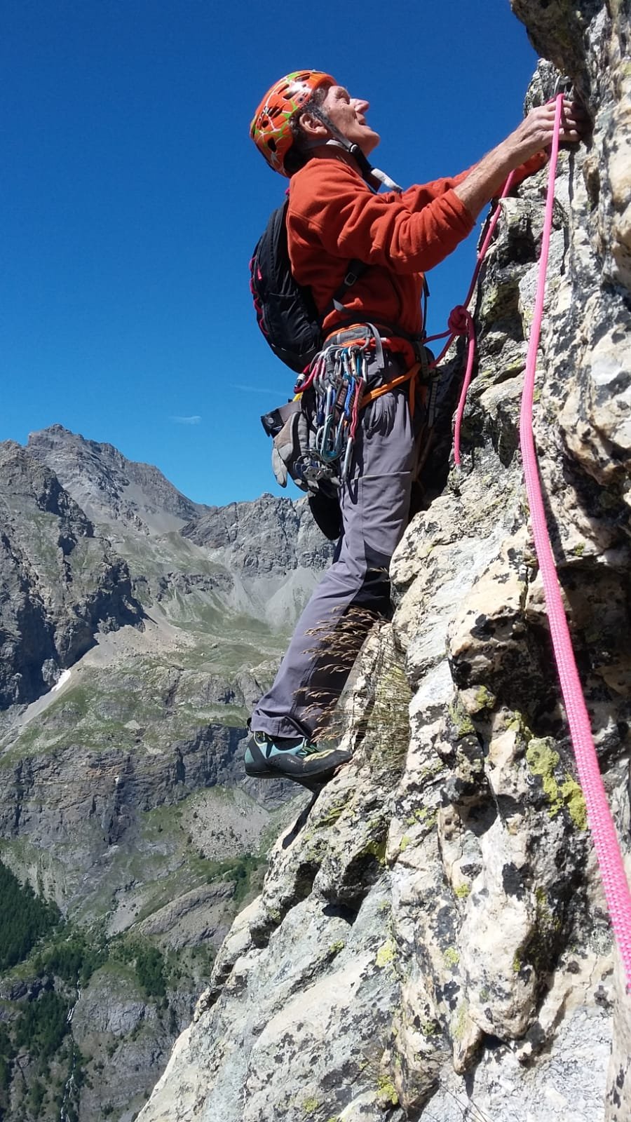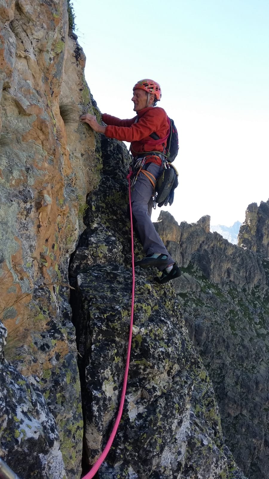 Dopo tanti anni di nuovo su questa bellissima via. Peccato che la parte interessante sia così breve! Dopo il diedro abbiamo proseguito di conserva assicurata.