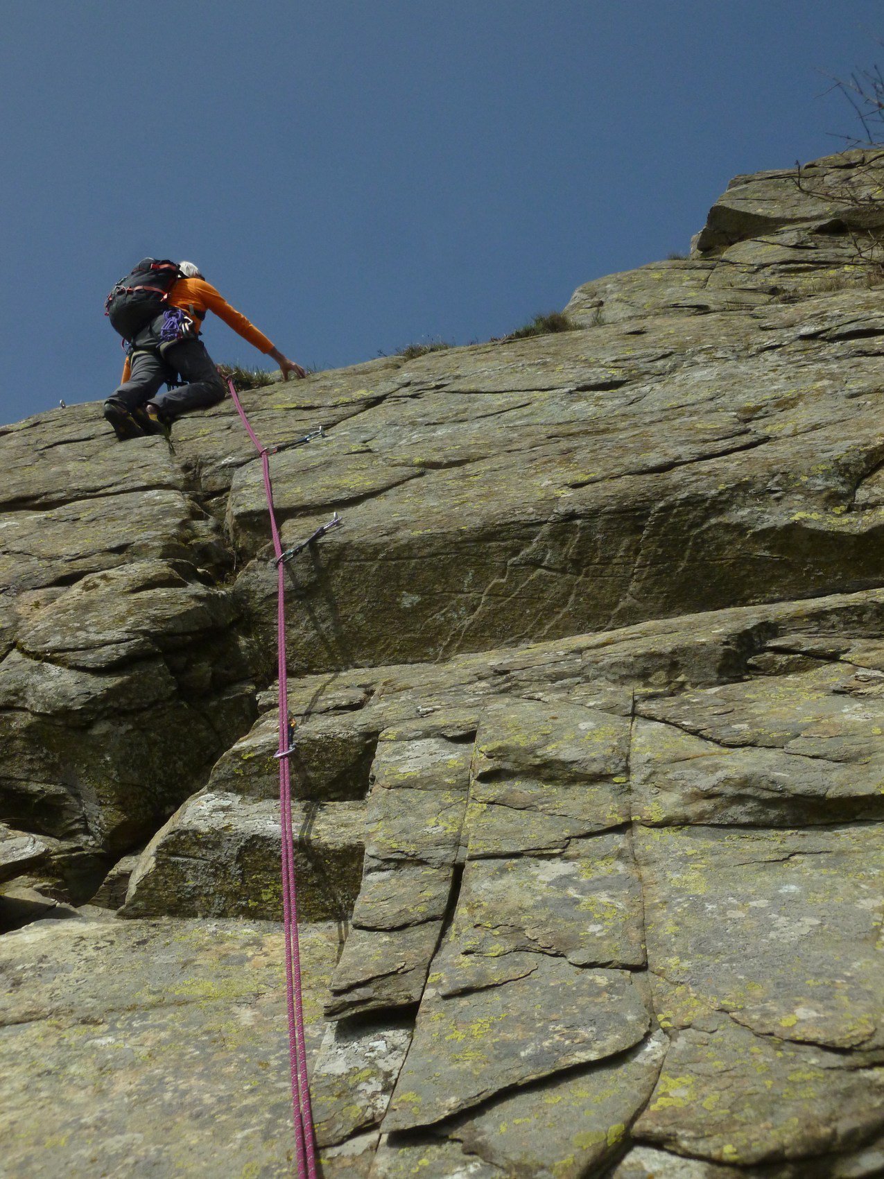 bella salita su roccia buona, itinerario logico che arriva sullo sperone aereo e molto panoramico. In fondo alla doppia, se non si salgono altre vie,…