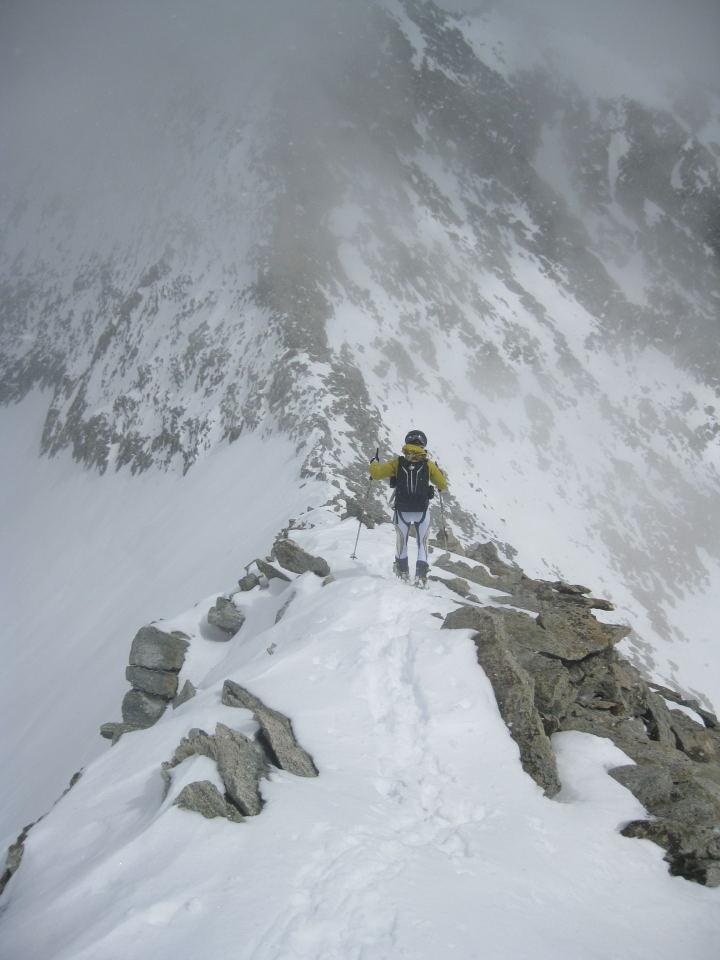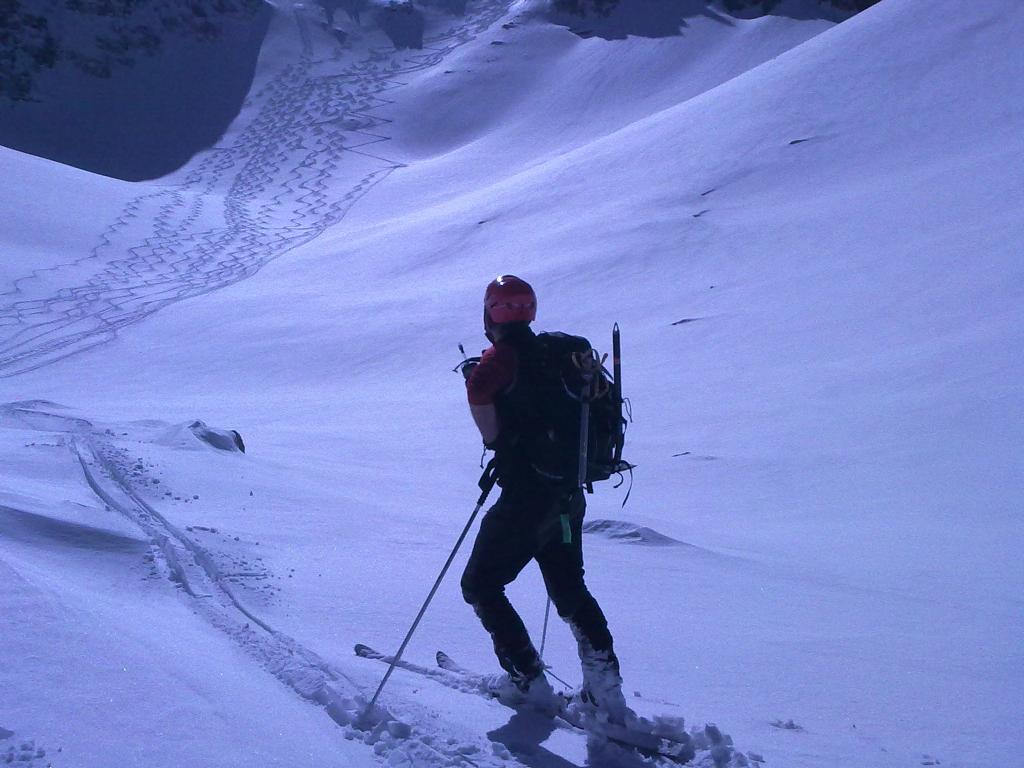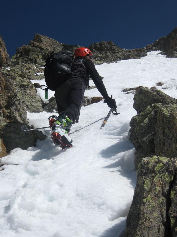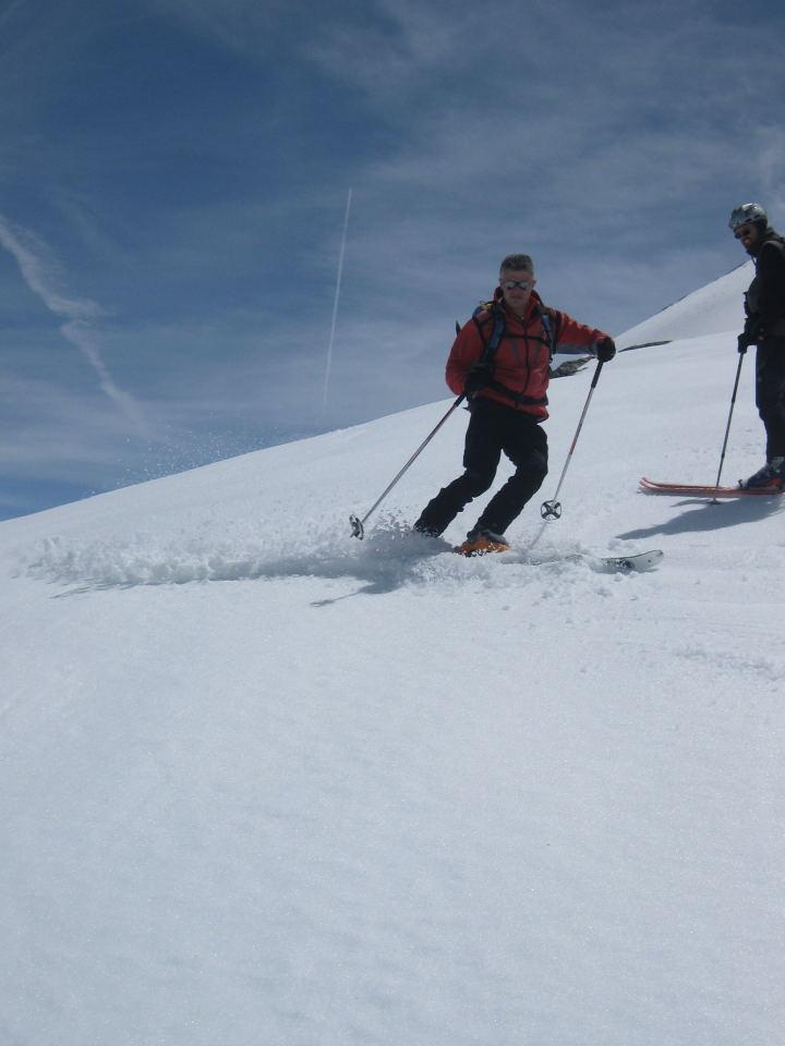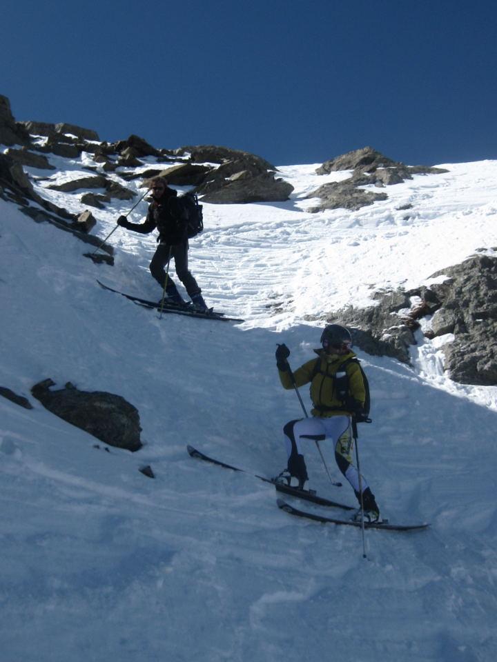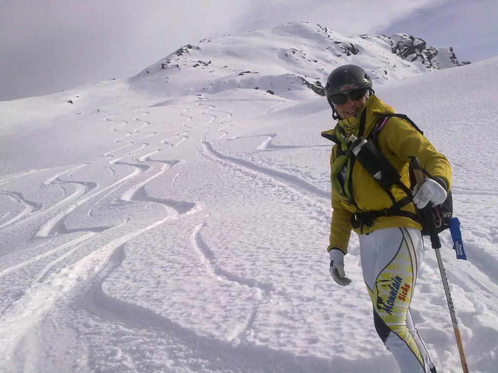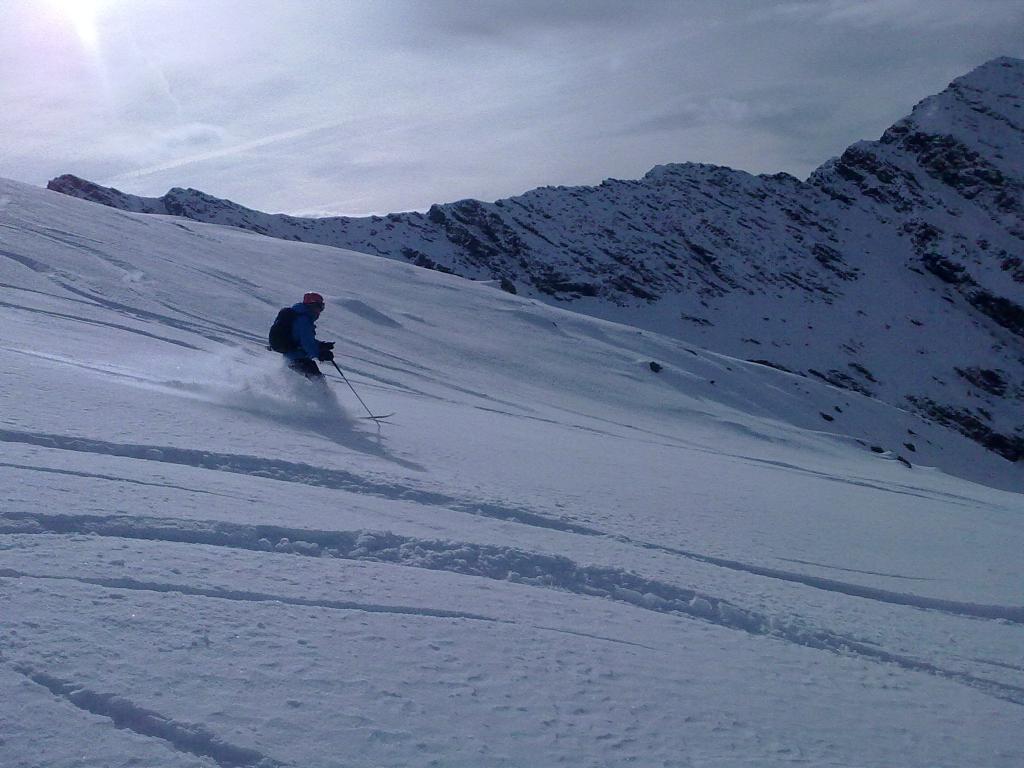 | gianni-savoia | Arrivo all'aereo colletto | gianni-savoia | Salendo verso la vetta | gianni-savoia | Colpo d'occhio spaziale | gianni-savoia | Si parte | gianni-savoia | Parte terminale | gianni-savoia | Spettacolare pendio alto in poudre tassè | gianni-savoia | Canalino inferiore di raccordo | gianni-savoia | Ottima parte inferiore. Si nota in alto il pendio da raccordare in discesa, sotto le rocce