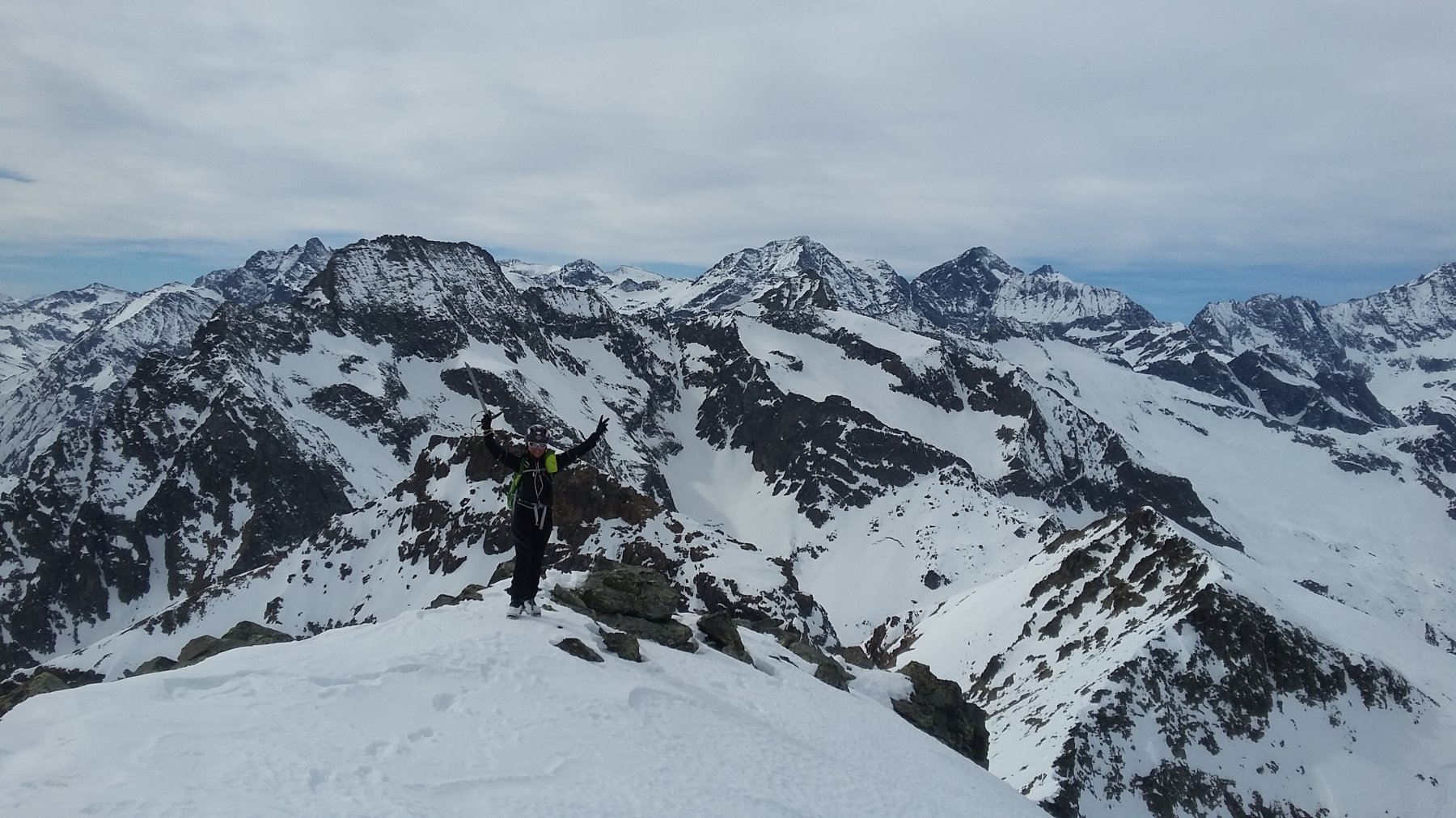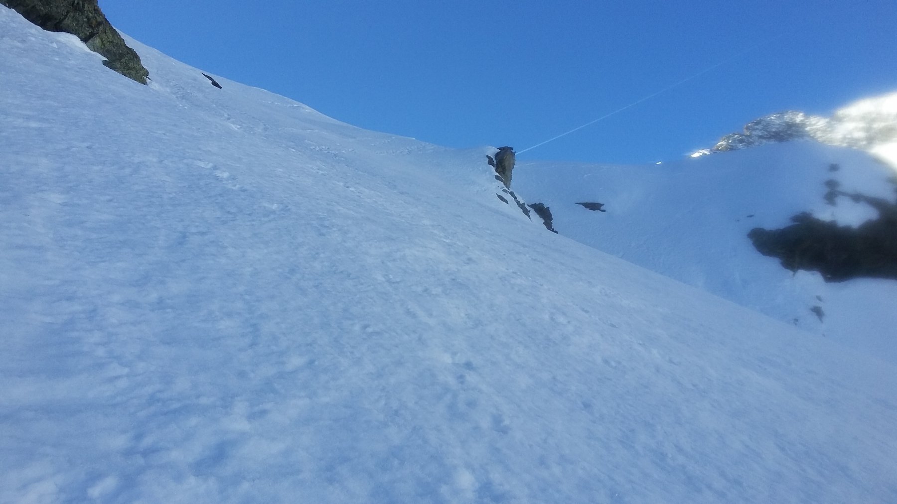| gianni-savoia | In salita, sotto il canale nord | gianni-savoia | L'ultimo canale prima della forcella | gianni-savoia | Sarà buona da scendere ? | gianni-savoia | Salendo in vetta | gianni-savoia | Panorama 360° dalla vetta | gianni-savoia | Dalla vetta, i pendii da disegnare | gianni-savoia | Scendendo dalla vetta | gianni-savoia | Entusiasmo... | gianni-savoia | Un duro lavoro. In fondo, sornione, attende il canalone... | gianni-savoia | Soddisfazione | gianni-savoia | | gianni-savoia | Canalone di rientro | gianni-savoia | Canalone di rientro visto dal ponte