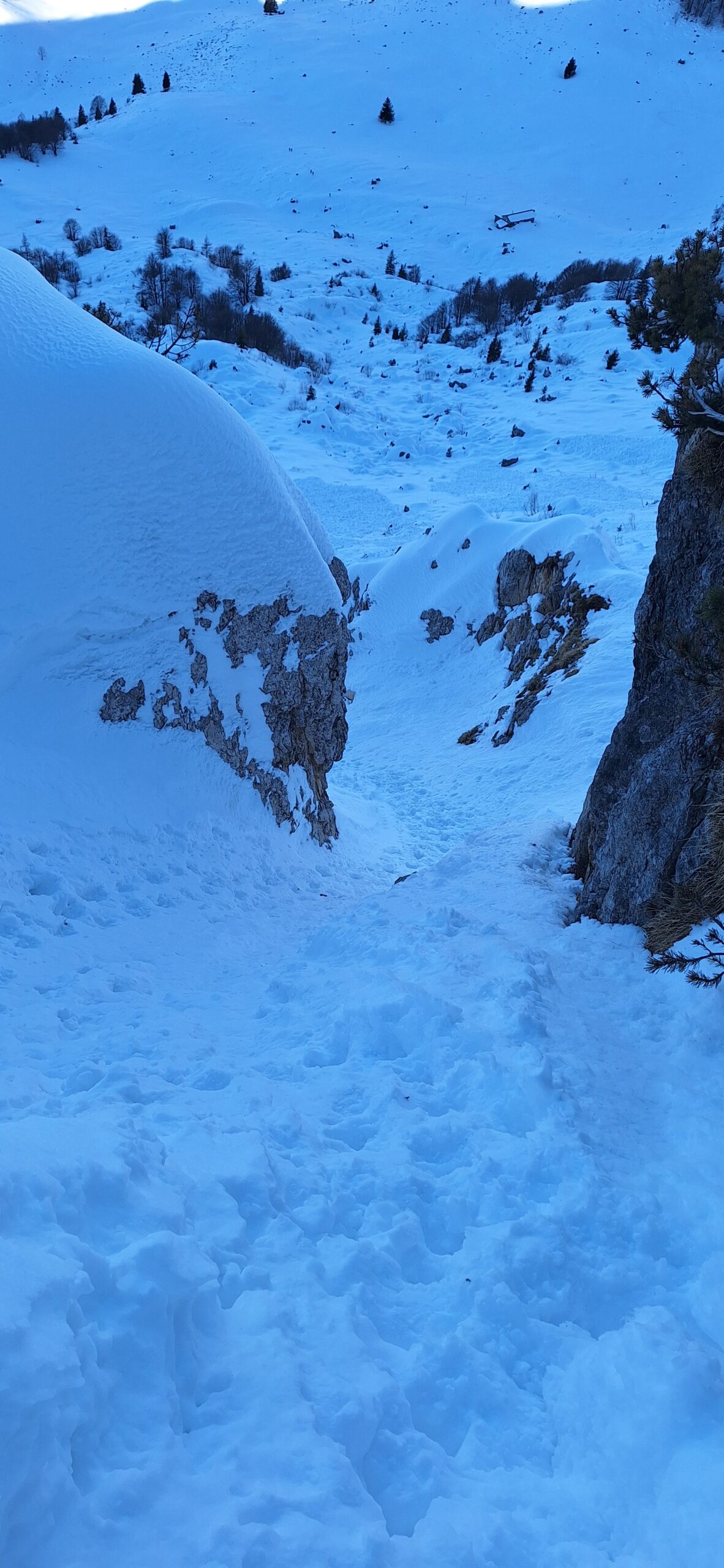 Itinerario lungo da fare in giornata ma molto bello, la nevicata ha coperto la traccia ma per fortuna avevo davanti una cordata che ha tracciato…