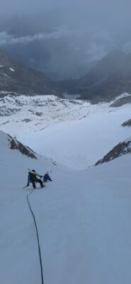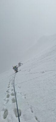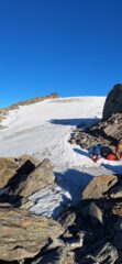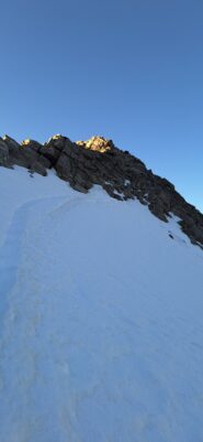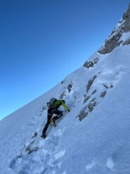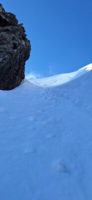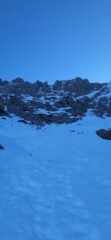 Si incontra la neve poco dopo il rifugio Denza, neve non rigelata, la terminale la si supera senza difficoltà, per fortuna in parete la neve…
