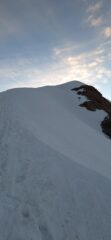 Questa salita non presenta particolari difficoltà alpinistiche ma bisogna comunque fare attenzione. Percorso la cresta ovest integrale, Io ho messo i ramponi circa 100m sotto…