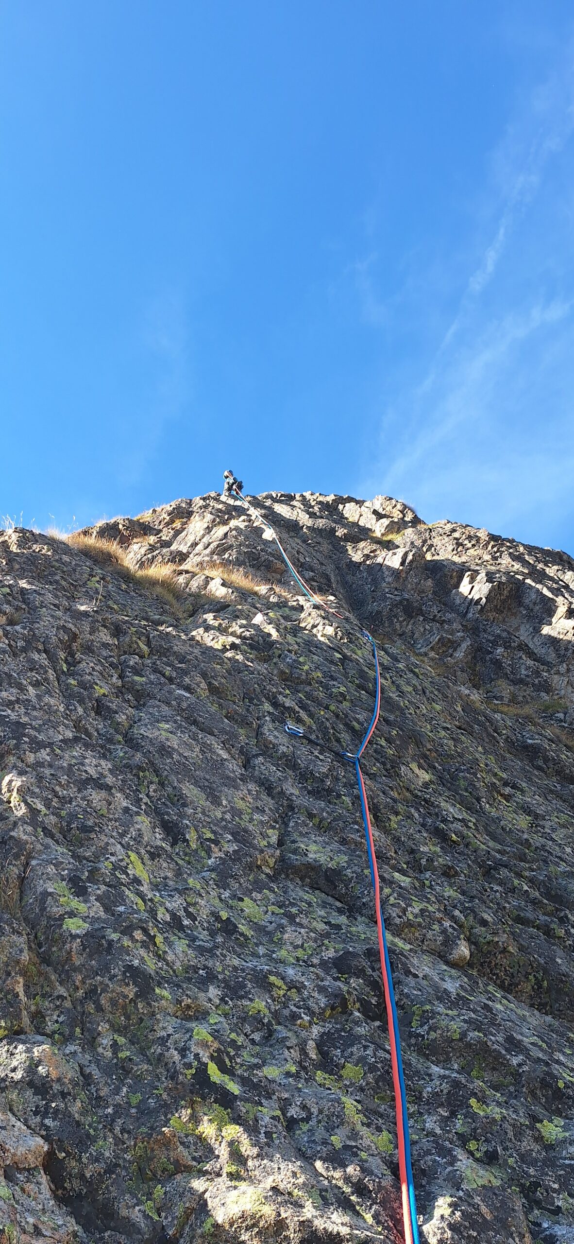 Ho approfittato delle condizioni ancora estive prima delle nevicate previste per i prossimi giorni, cresta completamente secca, secondo me qualche passo di III grado, messo…