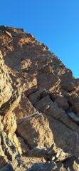 Bellissima via su roccia top. Chiodatura ravvicinata, in alcuni punti forse troppo. Non è vero che l'obbligato è più alto di quello dichiarato. Secondo noi sono più reali…