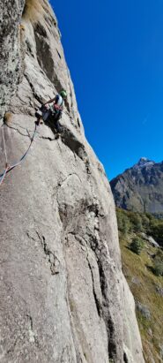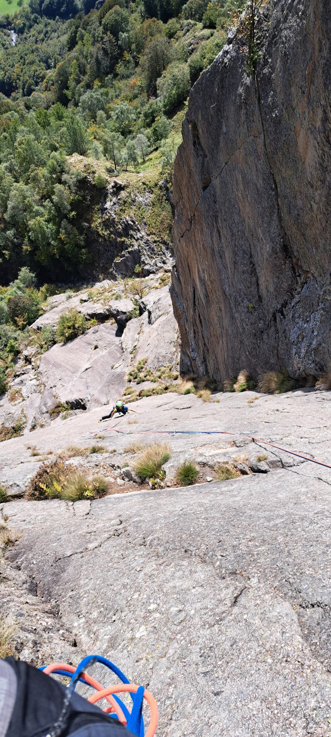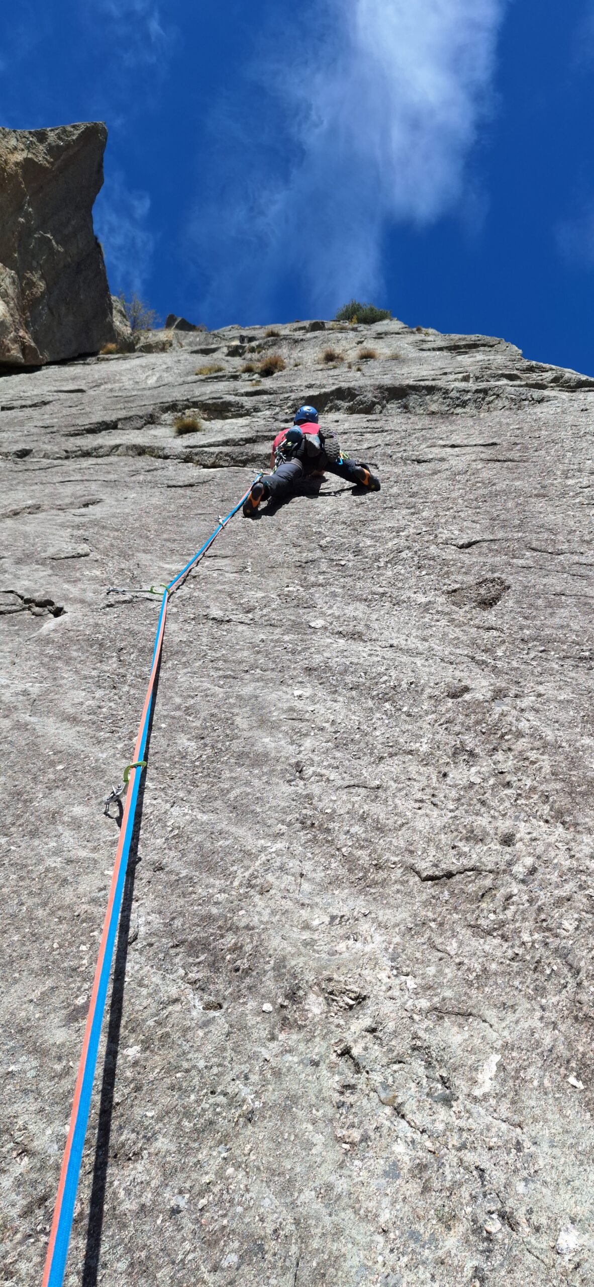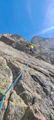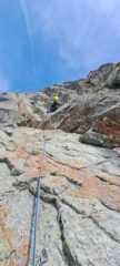 Gran bella via in un ambiente spettacolare! Granito stupendo e chiodatura ottima. Per vari motivi siamo stati lenti, abbiamo attaccato alle 10 e abbiamo finito le…