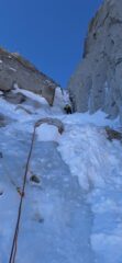Canale in buone condizioni, ben tracciato, uscita non banale su cornice. Oggi molta gente in giro anche su altre linee.