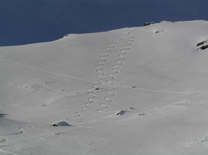 Bella gita in ambiente solitario,visti alcuni camosci e una volpe. Neve abbondante e farinosa su tutto il percorso. Fino all'Alpe Comba è tracciato dai racchettari…