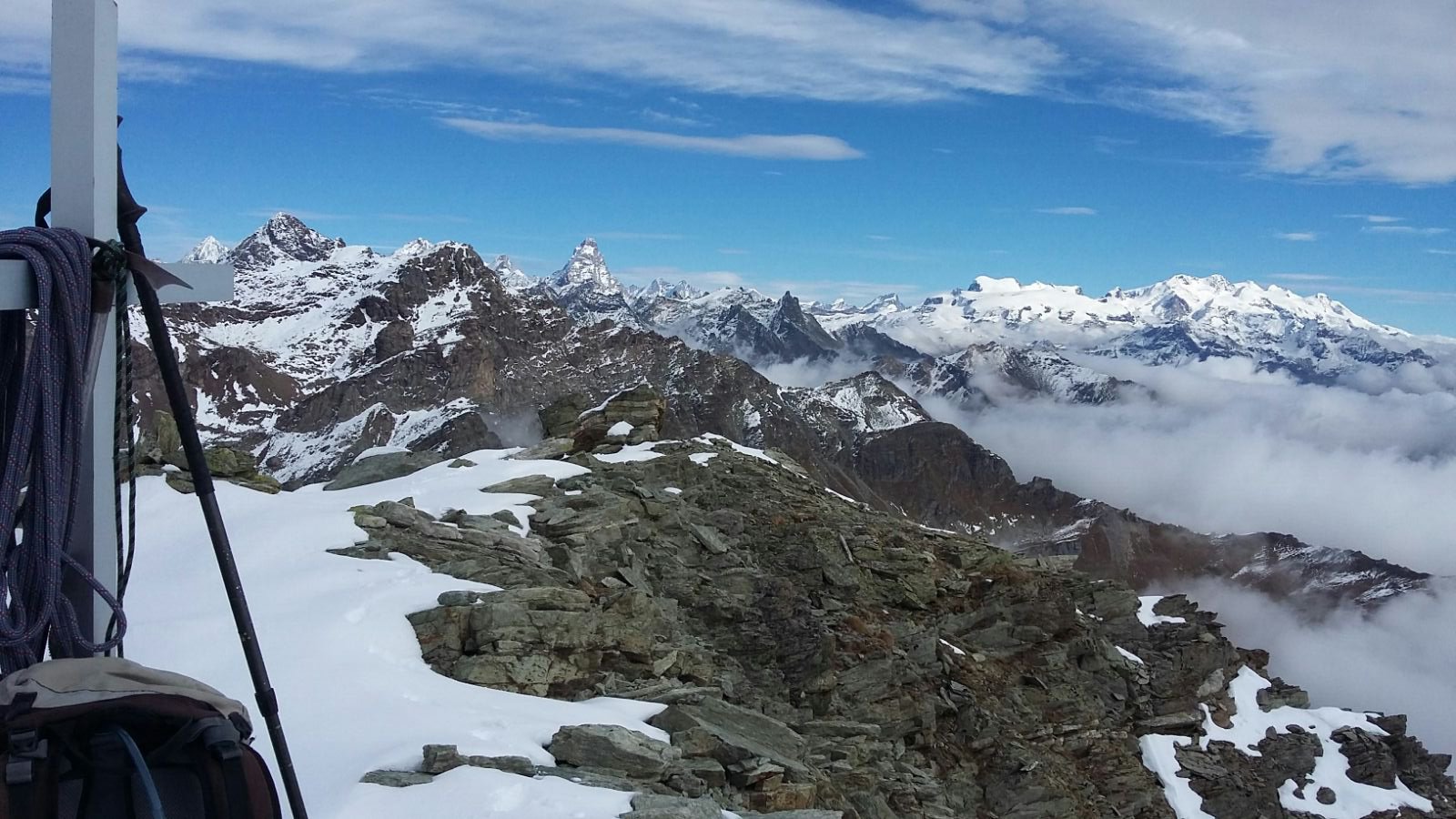| gino74 | dal parcheggio l'itinere DI CRESTA, quello escursionistico è parallelo a sx. | gino74 | colle Champillon, evitabile | gino74 | Tini e Teddy sul ripido pendio finale | gino74 | inizio della cresta FUORI VIA ESCURSIONISTICA | gino74 | tratto di cresta esposto: FUORI VIA ESCURSIONISTICA | gino74 | dalla cresta, tra le neve, ometto della normale escursionistica. | gino74 | i compagni sulla normale | gino74 | tratto di salita | gino74 | tratto di salitaultimo tratto in comunione tra le 2 vie. | gino74 | il Bianco dalla cima | gino74 | Teddy e Giuliof sulla seconda cima | gino74 | foto di vetta | gino74 | la vetta | gino74 | traverso intermedio | gino74 | tratto di via normale | gino74 | da poco sopra il colle | gino74 | Tini,Teddy e Giuliof in break