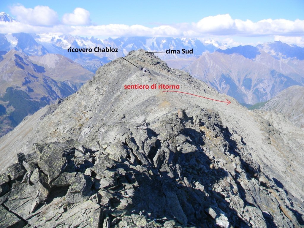 | gino74 | incantevole avvicinamento | gino74 | incantevole avvicinamento | gino74 | sotto l'aereo la cima Sud, la croce di vetta è oltre; in vista tutta cresta NO | gino74 | dal colle la prima metà di cresta | gino74 | seconda metà di cresta con la punta Sud, | gino74 | dalla cima S la N col ricovero Chabloz | gino74 | Croce di vetta con le roccette finali | gino74 | dalla cima N il lago di Pietra Rossa | gino74 | il ghiacciaio del Rutor dalla Cima N | gino74 | autoscatto di vetta | gino74 | dalla cima N | gino74 | con Claudio al colle Colmet
