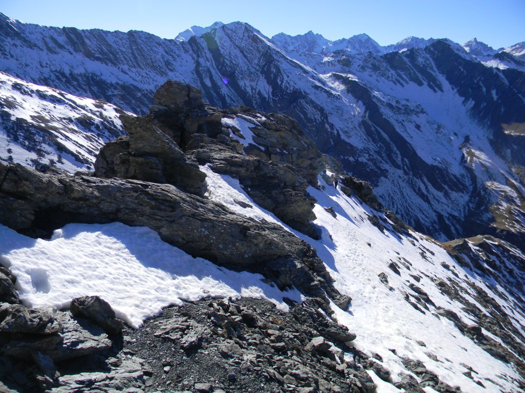 | gino74 | masso..one sommitale | gino74 | dal masso sommitale la aguzza vetta | gino74 | traiangolo di vetta | gino74 | dopo il traverso lato diga ciò che bisogna risalire sino in vetta | gino74 | dopo il traverso lato diga ciò che bisogna risalire sino in vetta | gino74 | il tratto intermedio in cui ci siamo calati e che offre passaggi di II/III esposti | gino74 | foto di vetta