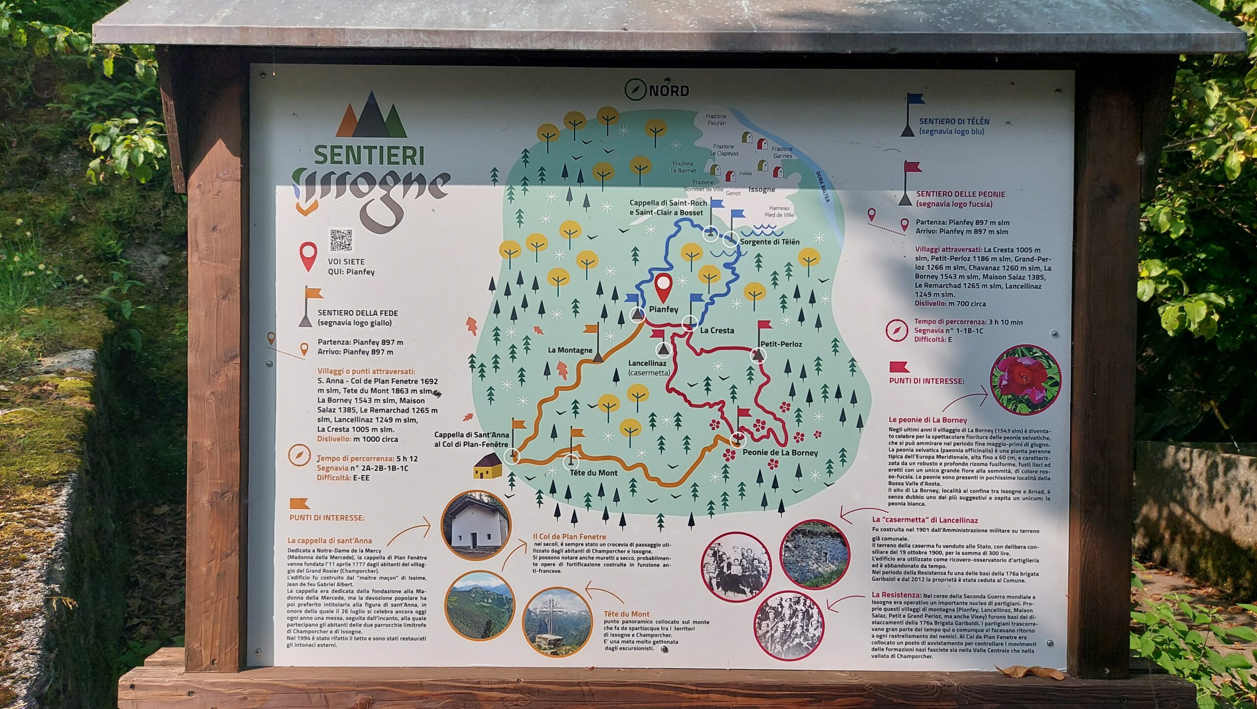 Seguendo la descrizione, siamo partiti dal parcheggio dell’albergo Camussot e girato l’angolo a sinistra dopo la struttura non incendiata si trovano le indicazioni per la…
