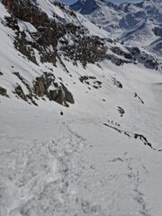 Scendendo per la pala sul versante nord bella neve, Purtroppo molto tritata soprattutto nei punti più ripidi e obbligati. Attenzione ai sassi affioranti Sul versante di salita…