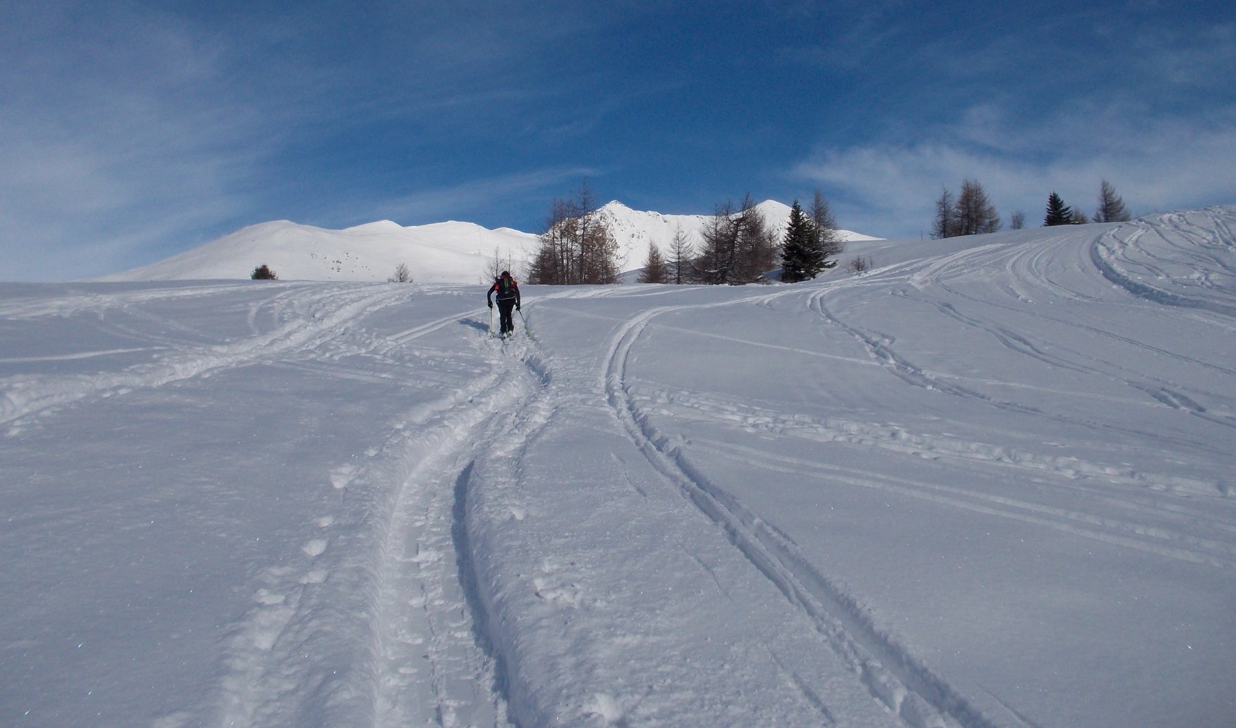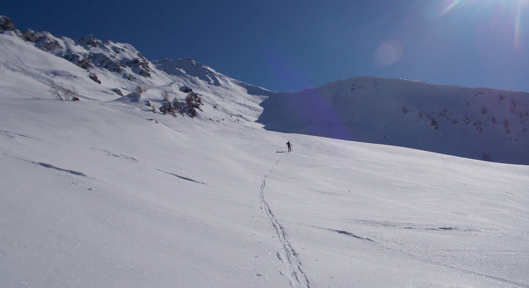 Monte Sobretta Settentrionale Giornata super, temperature primaverili, niente vento. Nessun altro lungo il nostro itinerario. In alto poca neve e ventata alternata a belle ed estese placche…