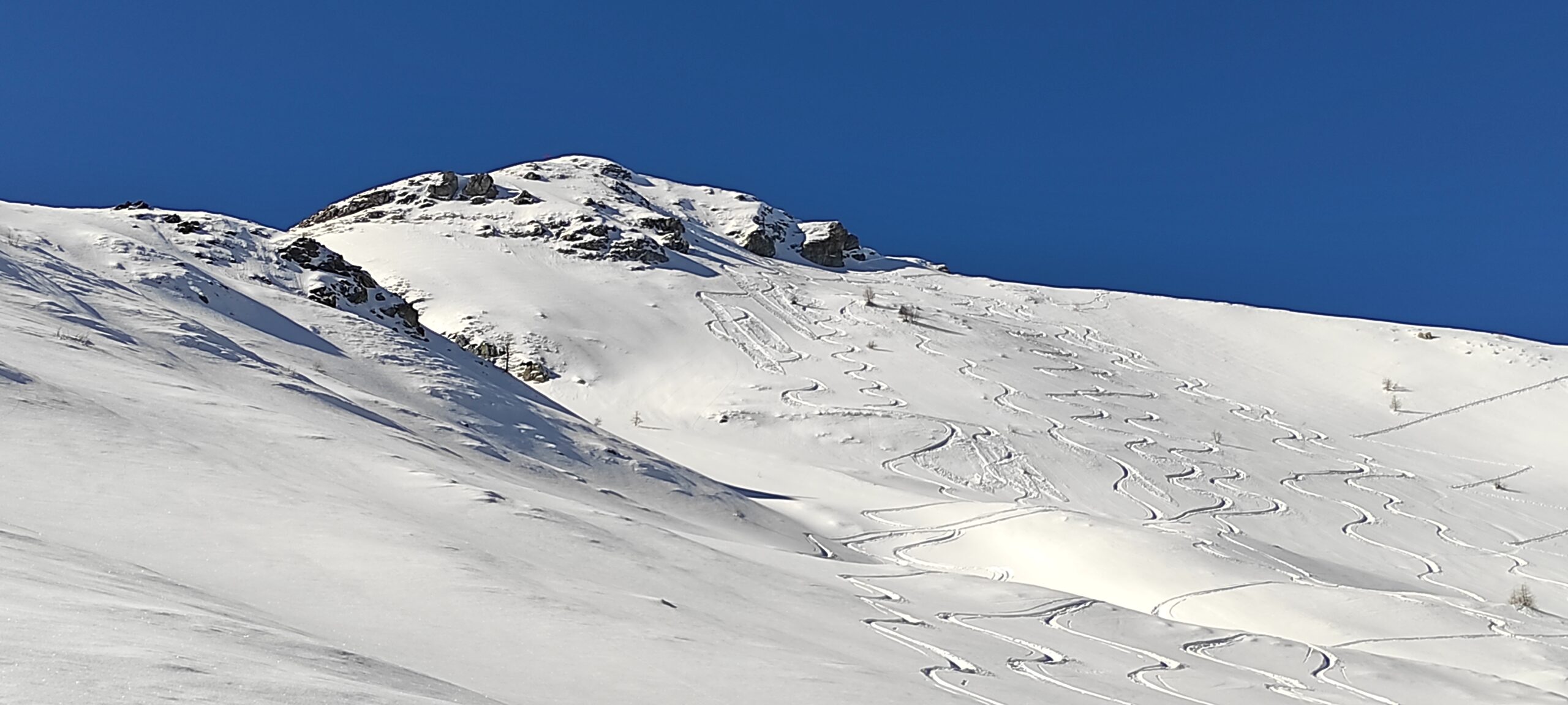 Alcuni gava e butta lungo la strada fino a sotto rocca Pervo circa 1900 metri slm. In seguito neve continua polverosa bellissima. Saliti a destra…