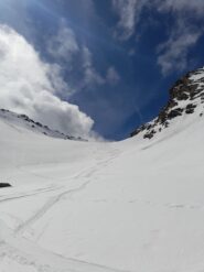Scarso rigelo, comunque neve sciabile in quanto omogenea, anche se cedevole di 4 dita in superficie. la strada fino all'inizio del vallone non è sciabile…