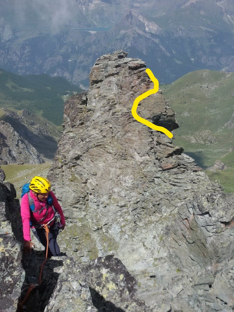 | gontier | Il primo diedrino appena si incomincia ad arrampicare | gontier | Lodo sul filo di cresta | gontier | | gontier | Passaggio appena prima del torrione | gontier | In uscita dal passaggio piu' difficile (quasi in cima) | gontier | Sullo sfondo evidenziata la discesa dal torrione