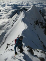 Faccio la Guida Alpina dal 1996, ed in tutti questi anni ho sempre accompagnato la mia clientela prendendo ad esempio una frase del celebre alpinista e Guida francese Gaston Rebuffat “bisogna sempre guardare la montagna con gli occhi degli amici che accompagni in cima ....” - è fondamentale per me instaurare con i miei compagni di cordata un rapporto di amicizia e di condivisione sia dei momenti belli che di quelli a volte meno piacevoli (il freddo, la traccia da battere, in certi casi anche una piccola percentuale di rischio, che bisogna comunque accettare nelle attività alpine). Questa condivisione porta a vivere la montagna in modo completo, dall'alba al tramonto, e fa si' che la gita in montagna diventi non solamente il salire una cima o tracciare una bella discesa in neve polverosa, ma un “momento della propria vita” da vivere intensamente e con passione - La passione per la montagna e la competenza tecnica si uniscono nel mio lavoro di Guida Alpina, per accompagnarvi nelle vostre avventure e per aiutarvi a realizzare i vostri sogni alpinistici, magari partendo dal mio nuovo Bed and Breakfast a Jovencan, nei vigneti che circondano la città di Aosta – La mia grande passione oltre all'arrampicata è lo sci, in tutte le sue forme – mi piace particolarmente la ricerca di nuovi itinerari, e soprattutto la realizzazione di piccoli “tour” di due o tre giorni con pelli di foca, alla ricerca dei pendi e della neve migliore - Quando ho avuto la possibilità ho comunque sempre viaggiato anche all'estero, sia per trekking che per alpinismo – in sudamerica ho visitato il Peru' e l'Argentina, salendo nel 2003 l'Aconcagua – in Africa ho visitato piu' volte il Marocco, sciando sull'Atlante ed arrampicando nelle gole di Todra – In Asia sono stato al campo base del K2 con Lino Lacedelli e la sua famiglia in occasione del 50° anniversario della salita al K2, ma il paese che preferisco in quel continente è il Nepal, dove sono stato otto volte – ho visitato cinque volte le valli attorno al Mera Peak, le valli del Manaslu e dell'Annapurna, dove ho fatto un tentativo nel 2003 sulla via Bonington alla parete sud fino a 7600 m. (questa parete è una delle piu' formidabili muraglie del mondo, e rappresenta ancora oggi una grossa sfida alpinistica ....)