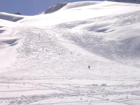partiti sotto la pioggia aChamonix uscivamo dalle nubi durante la salita in funivia:breve salita alla petit ag.vert e discesa tra folate di nebbia e sole al…