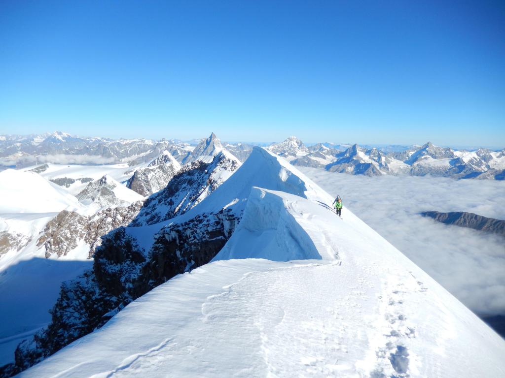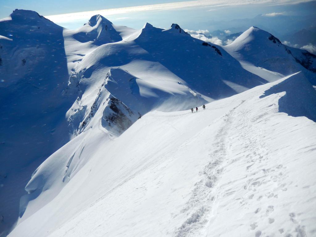 | gorlihutte | Ampi pendii sotto il Feejoch | gorlihutte | Crestina finale | gorlihutte | Dalla vetta Cervino e M.Bianco | gorlihutte | Alphubel e Michabel | gorlihutte | Discesa al cospetto del Alphubel