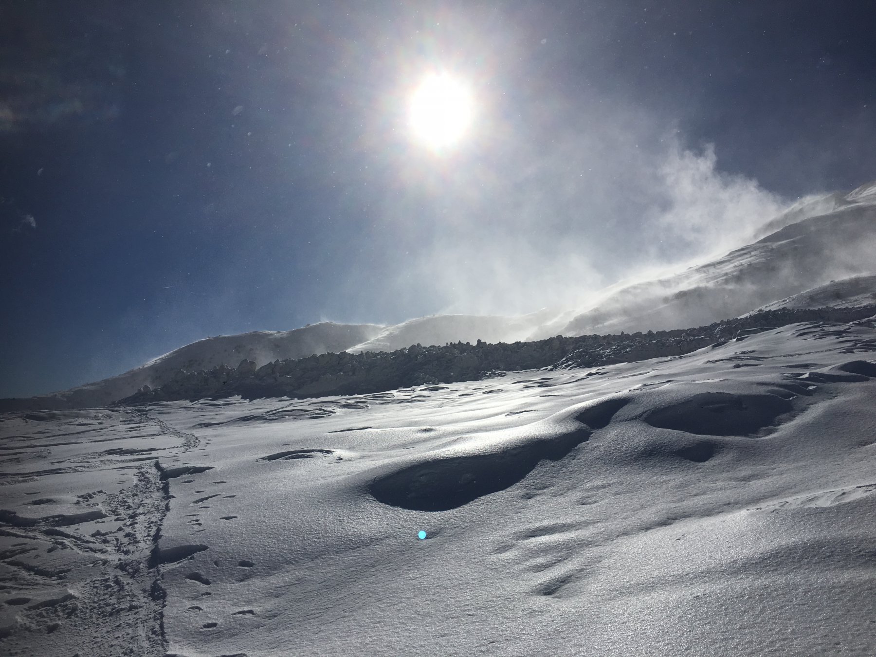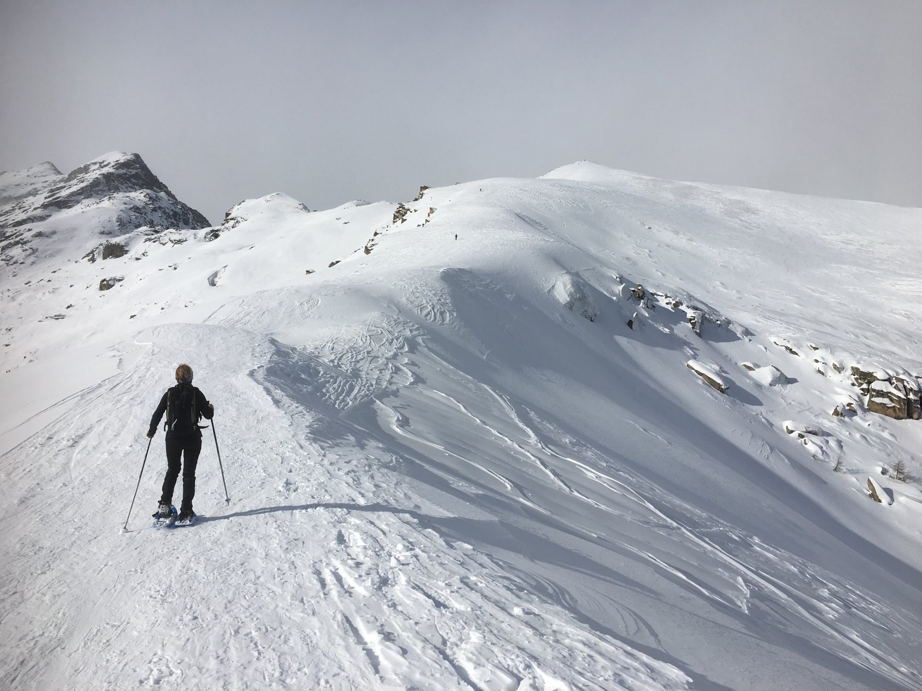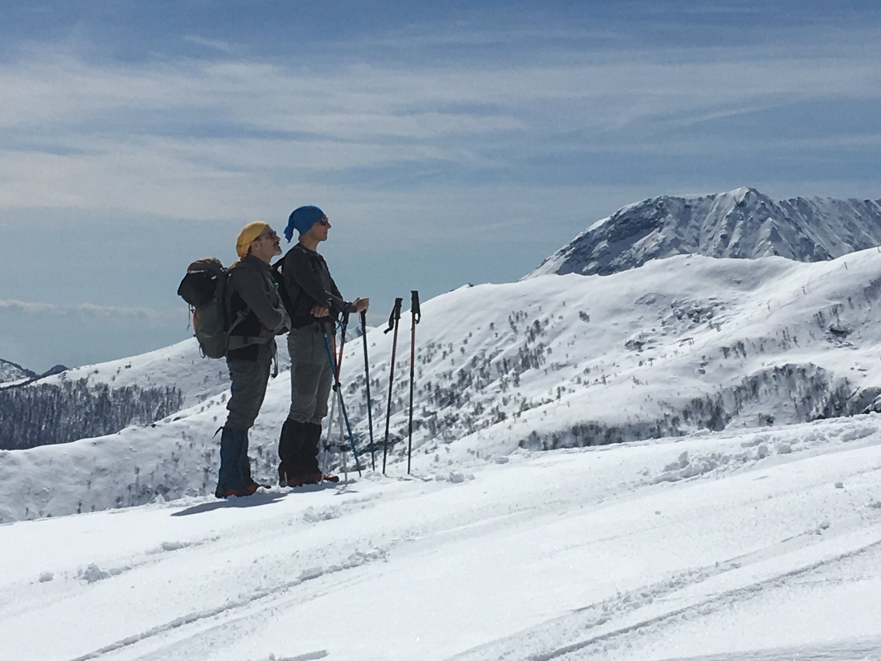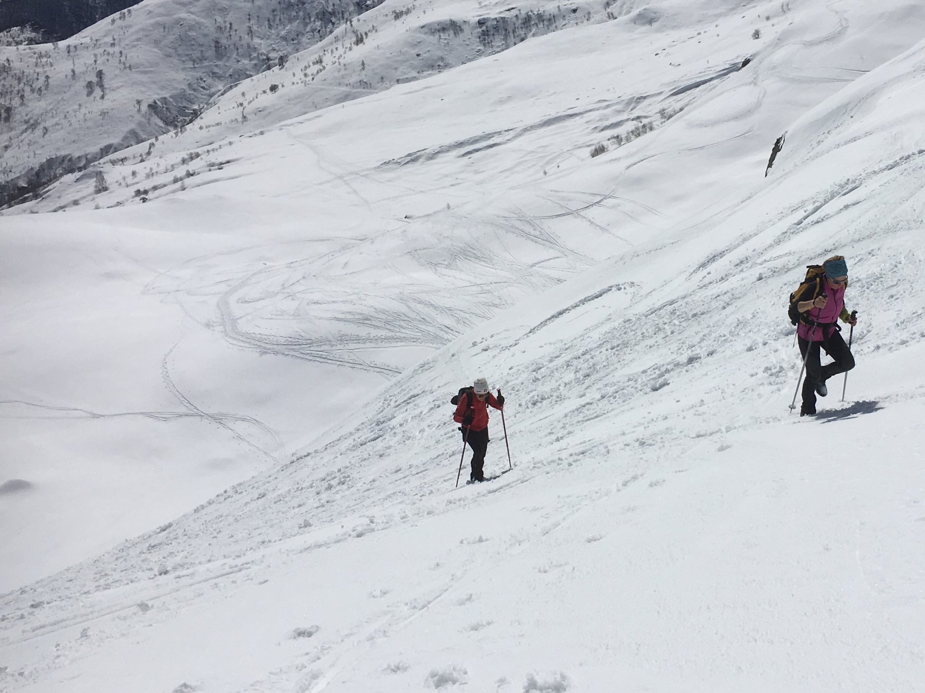 | grawal | Scrutando l'orizzonte oltre le creste. | grawal | Grazia e Laura impegnate sui pendii intermedi. | grawal | la determinazione di Massimo | grawal | Giochi di luce
